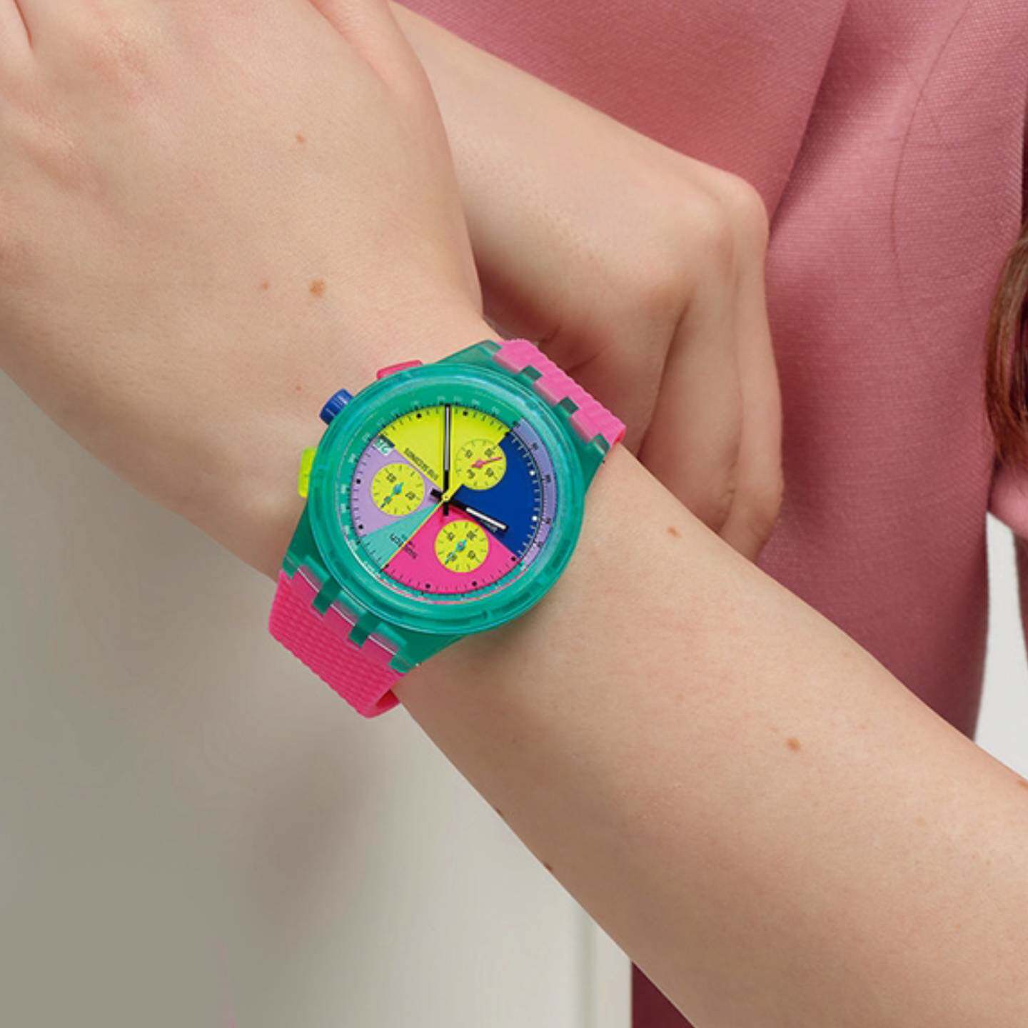 Swatch斯沃琪瑞士手表霓虹夜光潮流运动男女石英彩盘手表生日礼物