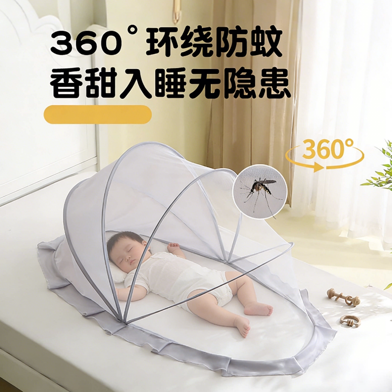 婴儿床蚊帐全罩式通用防蚊宝宝床上幼儿小孩可折叠免安装加密网纱