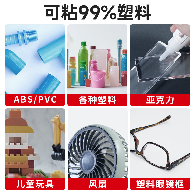 JUJU胶水塑料专用强力胶粘玩具亚克力汽车保险杠修复pp硬塑料件断裂修补pvc水管abs防水高粘度超强焊接万能胶