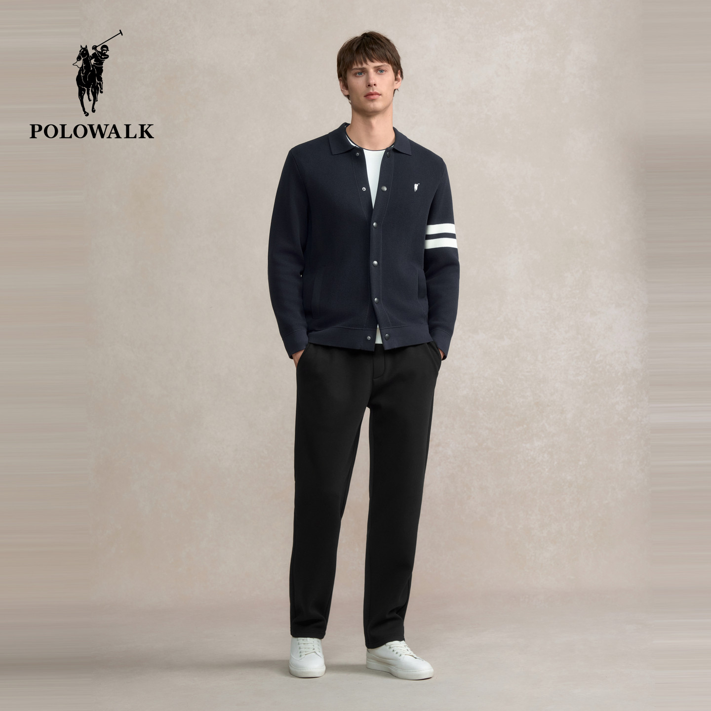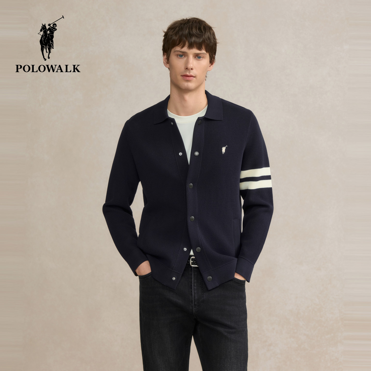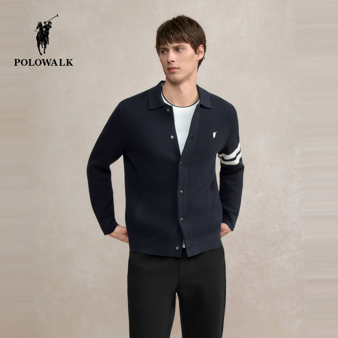 POLOWALK男式针织衫2025秋季新品翻领条纹针织开衫通勤上衣外套