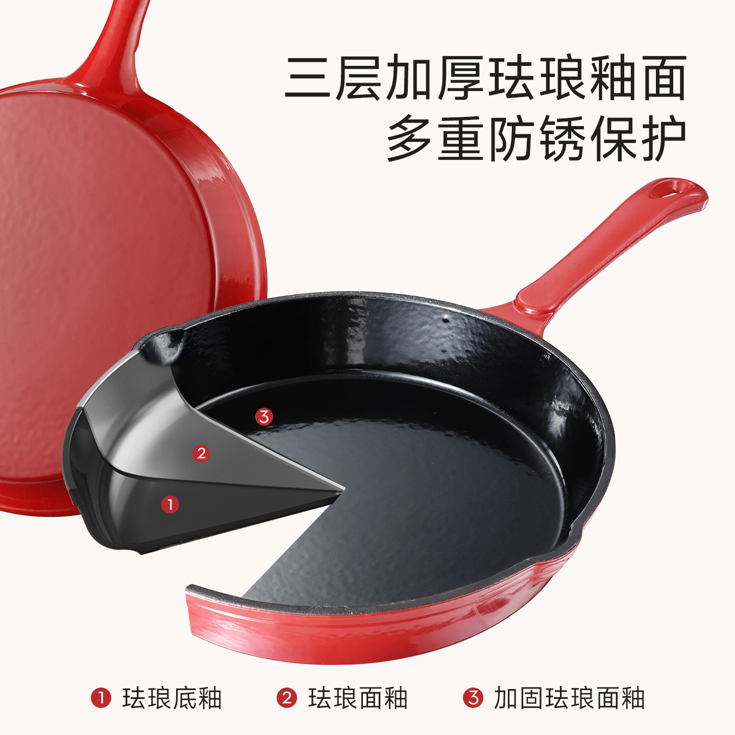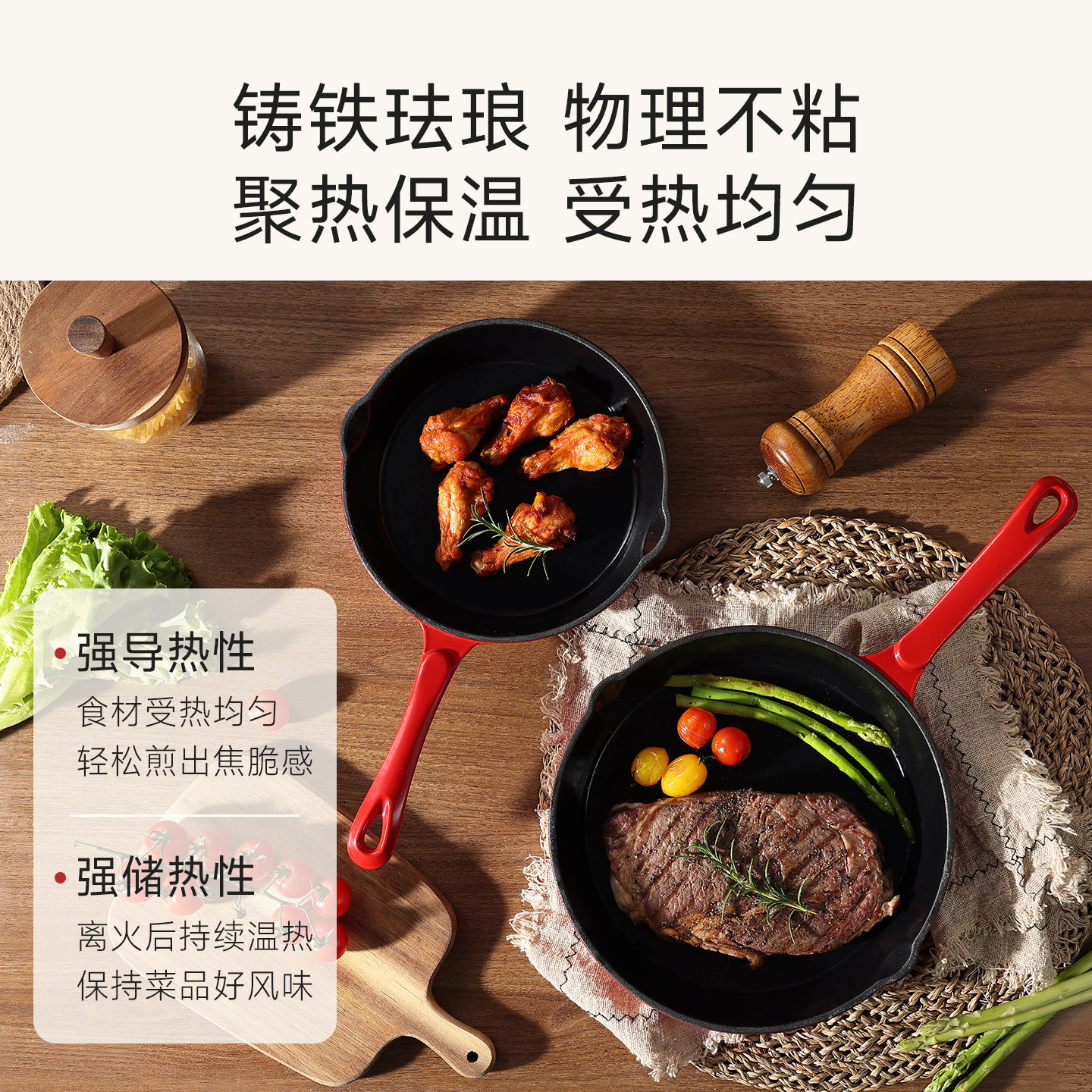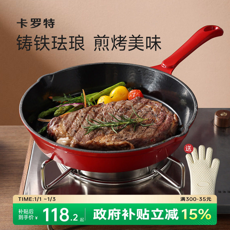 卡罗特平底锅珐琅锅铸铁锅煎锅铁板烧家用牛排煎烤锅煎蛋饼早餐锅