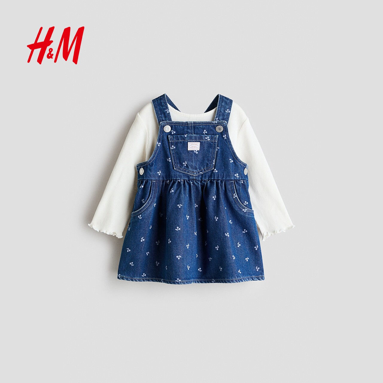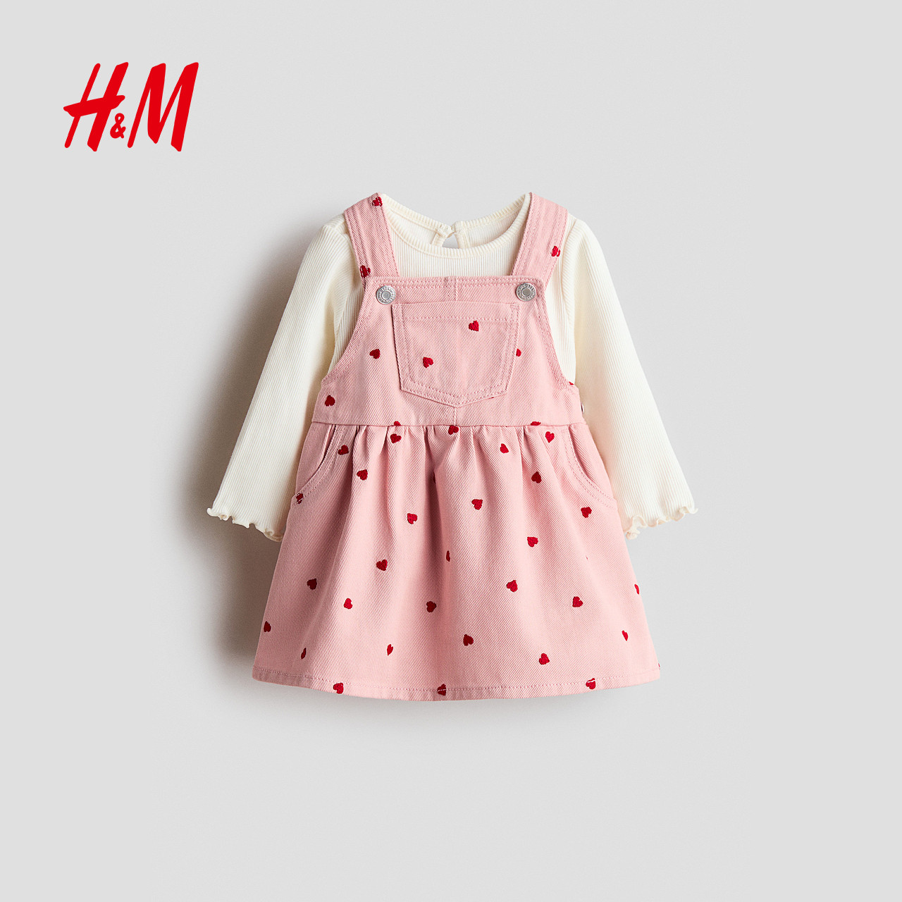 HM春季童装女婴背带连衣裙和上衣2件式套装1316478