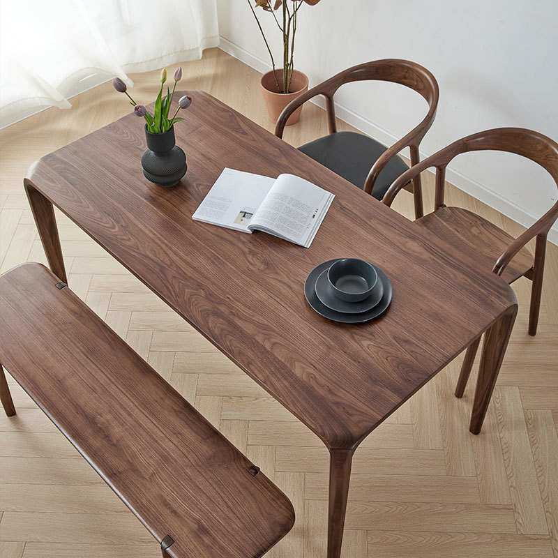 全实木家具简约饭桌现代家用日式黑胡桃木极简式餐厅整体榫卯饭桌
