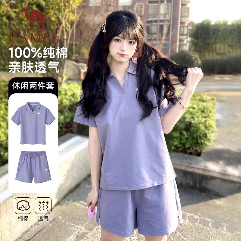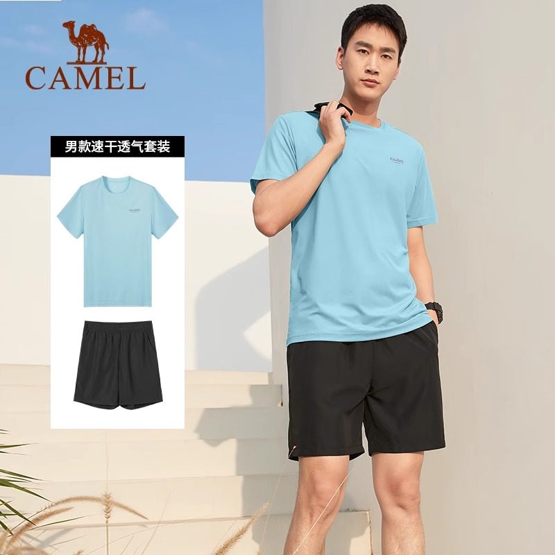 【断码清仓】骆驼运动套装男短裤短袖两件套T恤健身跑步运动服女