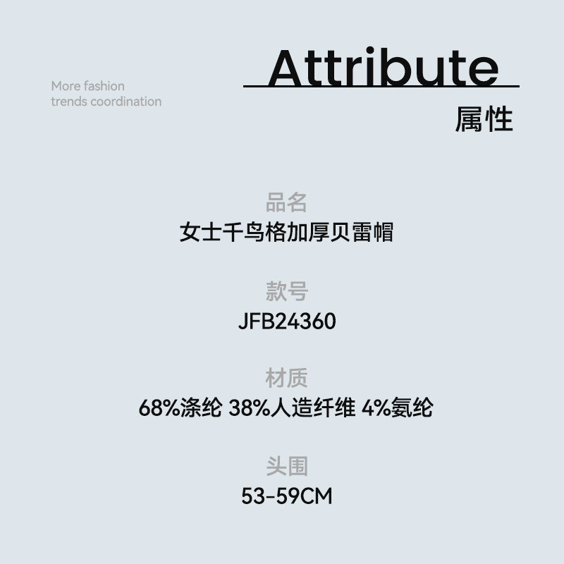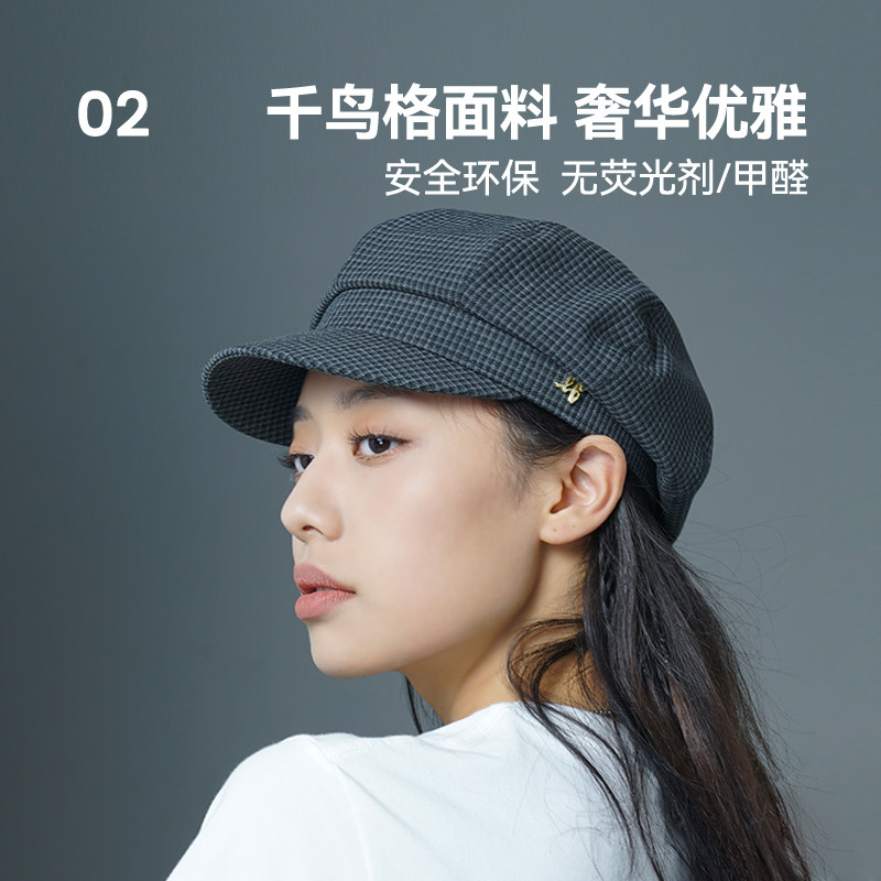 lackpard力可派帽子女士秋冬新款千鸟格贝雷帽时尚八角帽报童帽