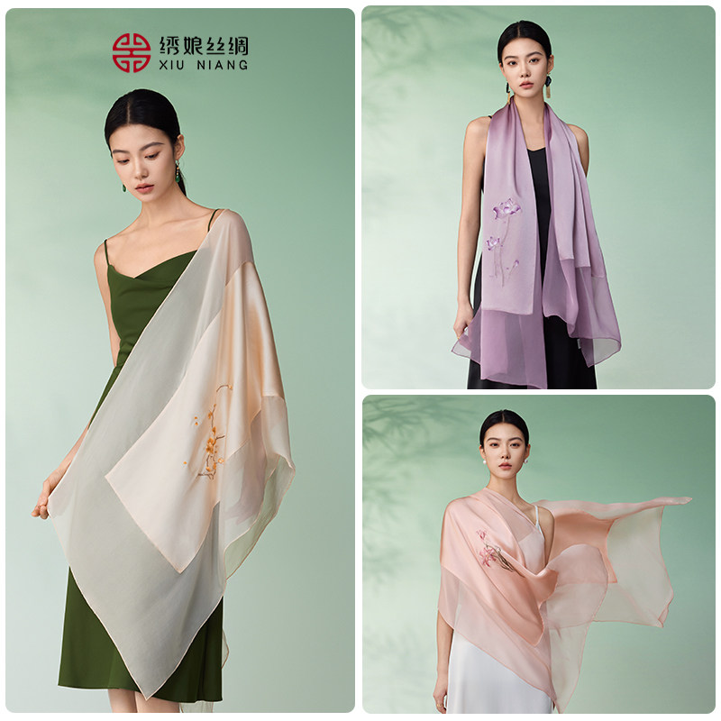 绣娘丝绸真丝丝巾高级披肩100%桑蚕丝非遗手工苏绣送女友妈妈礼物