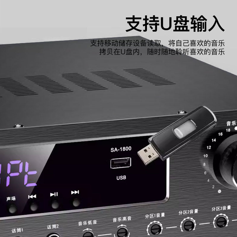 索爱功放机家用大功率专业卡拉OK音响家庭影院重低音蓝牙功放音箱