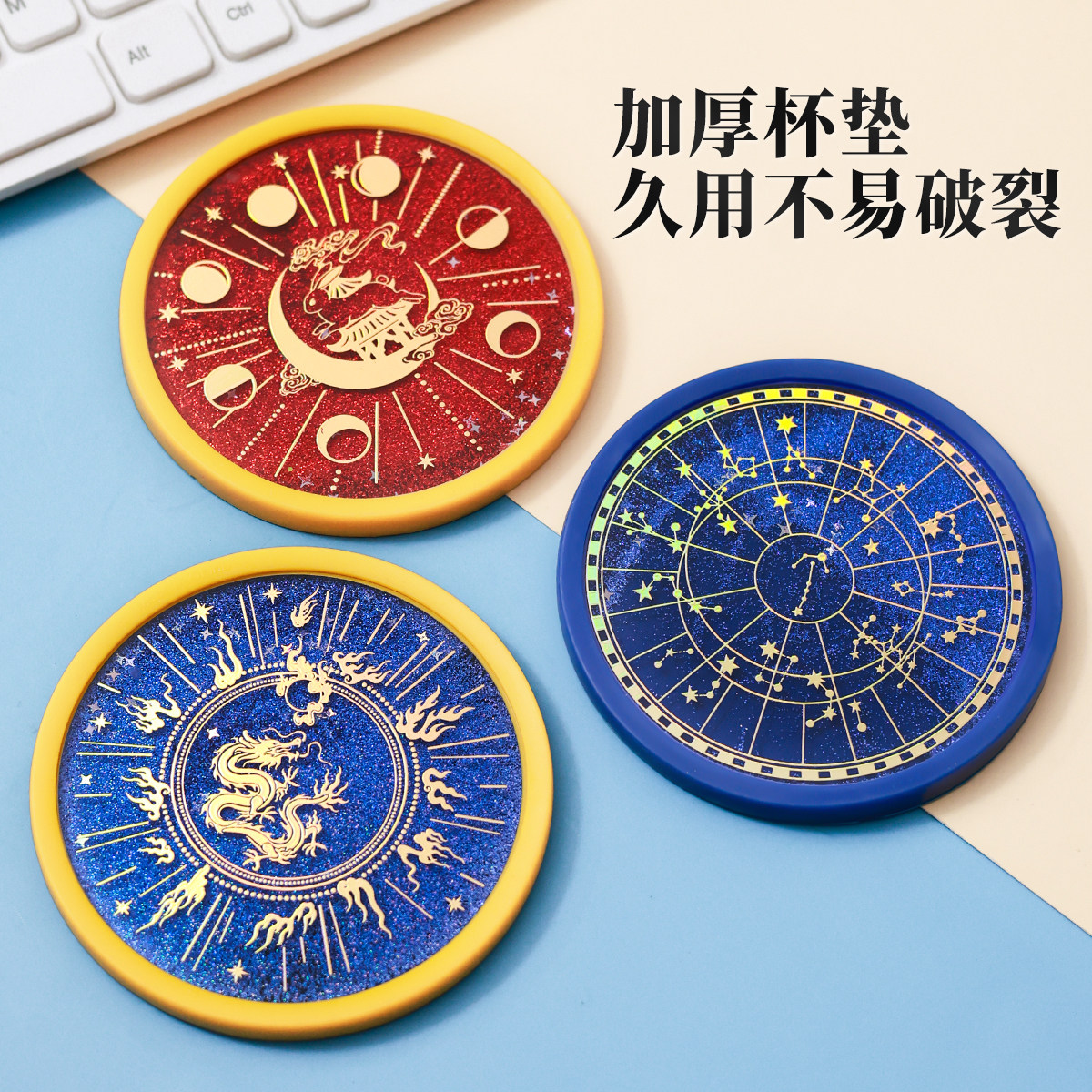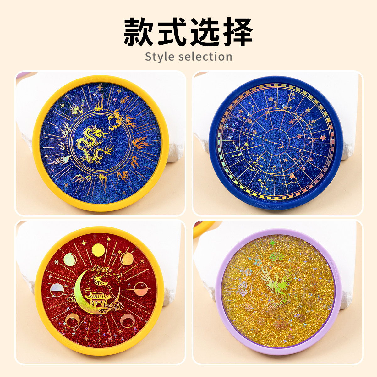 亚克力镭射炫彩烫金流沙杯垫定制动漫卡通流麻文创城市地标流沙麻将龙凤星图创意流沙杯垫定做