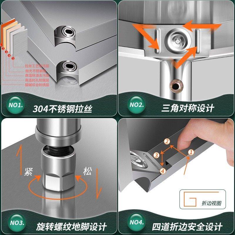 304不锈钢架子厨房多功能货架置物架三层围栏家用收纳架可调节