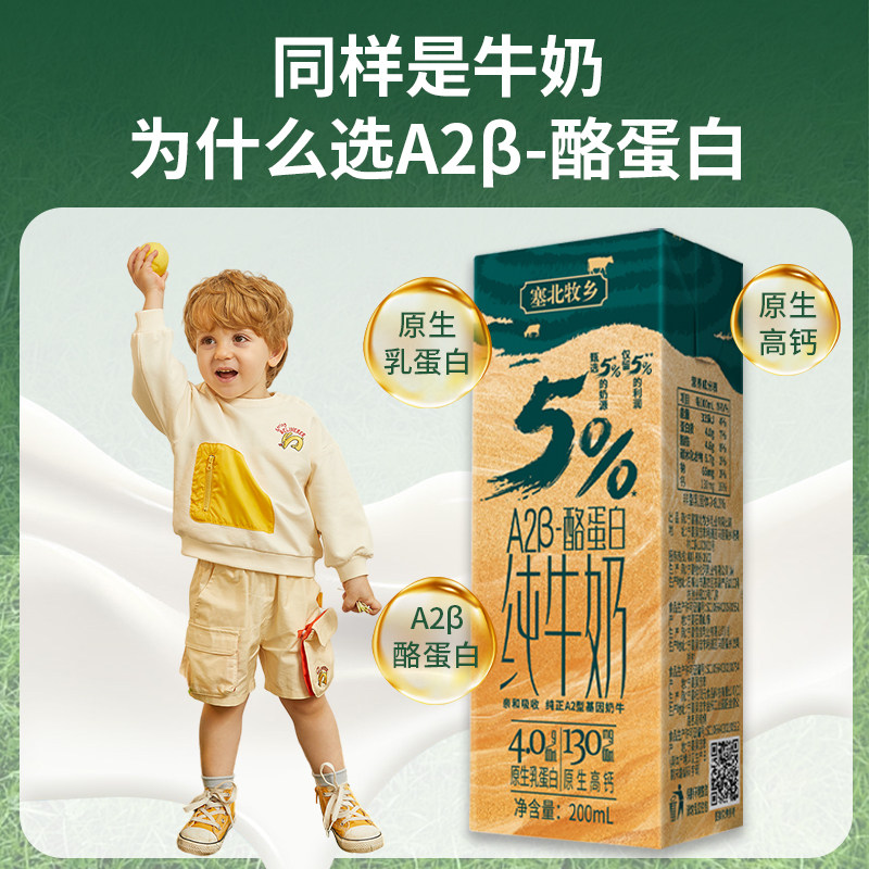 宁夏塞北牧乡纯牛奶4.0蛋白A2β酪蛋白200mlx10盒2箱亲和肠胃学生