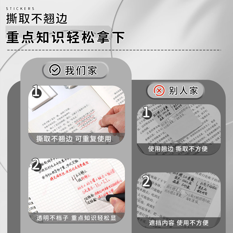 任意扩张贴便利贴不遮挡文字透明可折叠考研小学生用可撕有粘性便签贴纸初高中生记笔记贴订正错题办公便利贴