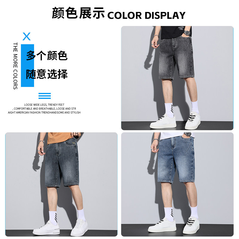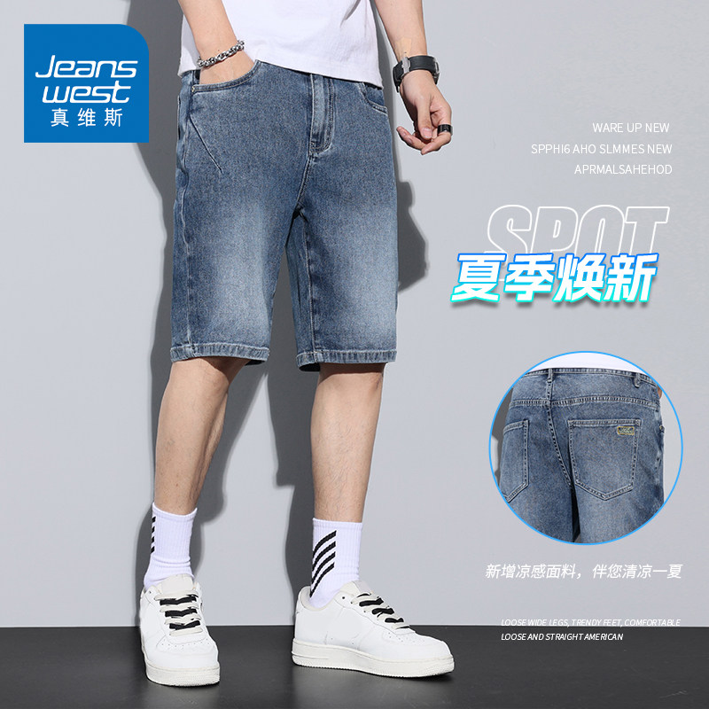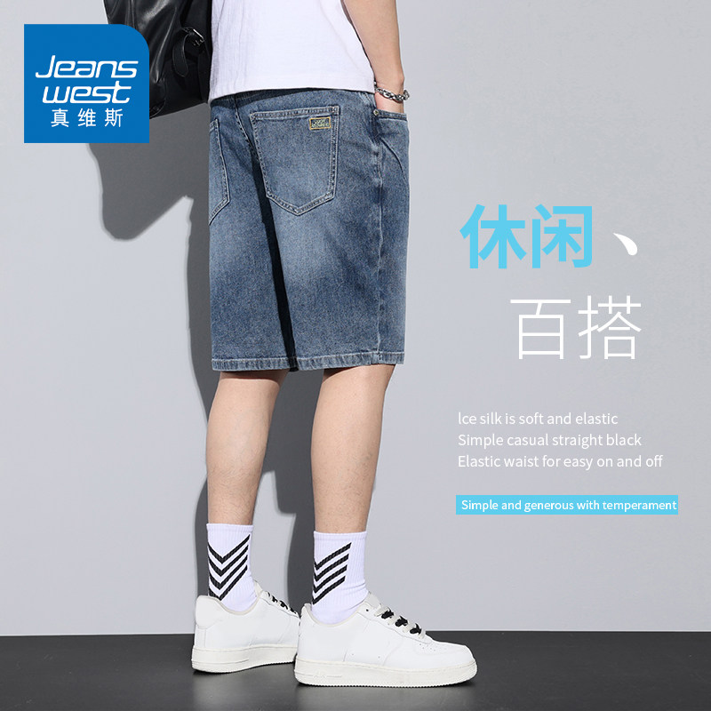 KZH真维斯美式牛仔短裤男夏季薄款宽松直筒五分裤潮流运动中裤子