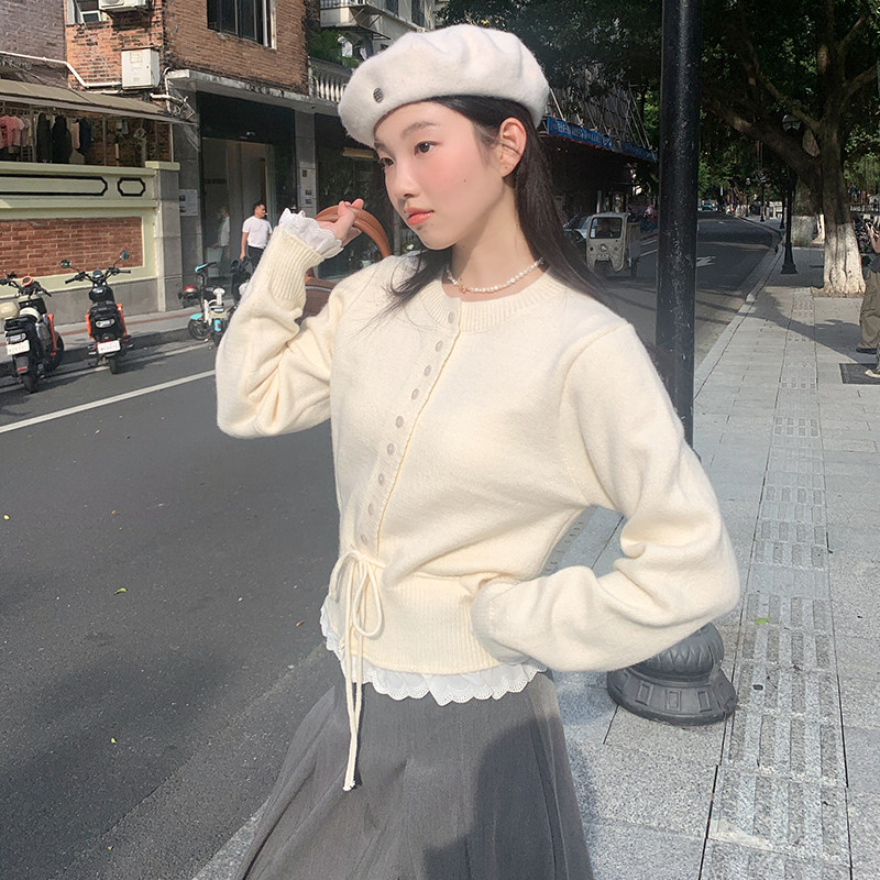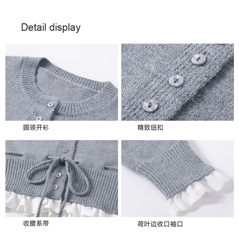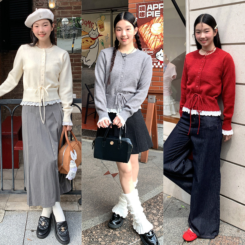 JR真维斯女装小香风针织衫2025年秋冬撞色荷叶边高级感开衫外套女
