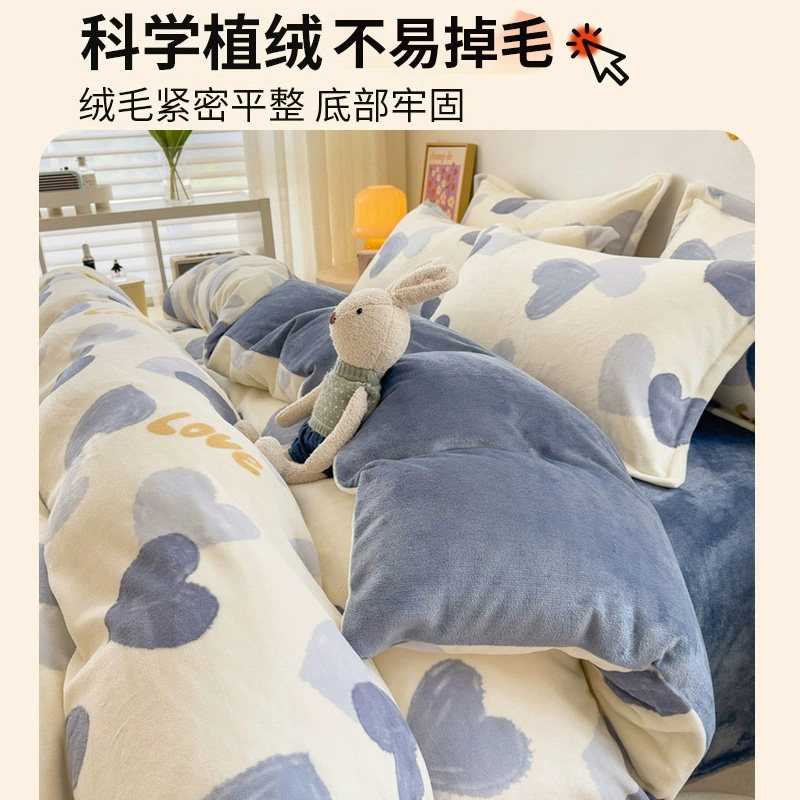 冬季加绒被套单件牛奶绒珊瑚绒宿舍单人单独毛绒被罩1.5米四件套3