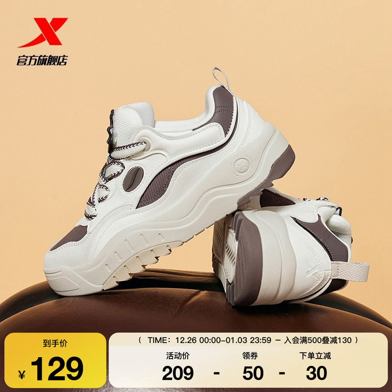 特步摩卡可可面包鞋|女鞋2025新款厚底增高板鞋休闲鞋潮流运动鞋