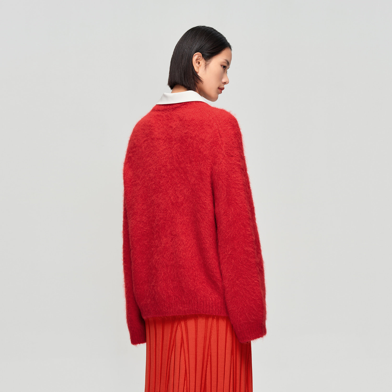 鄂尔多斯市断码羊绒开衫女春秋新款宽松毛衣外套翻领针织羊毛衫