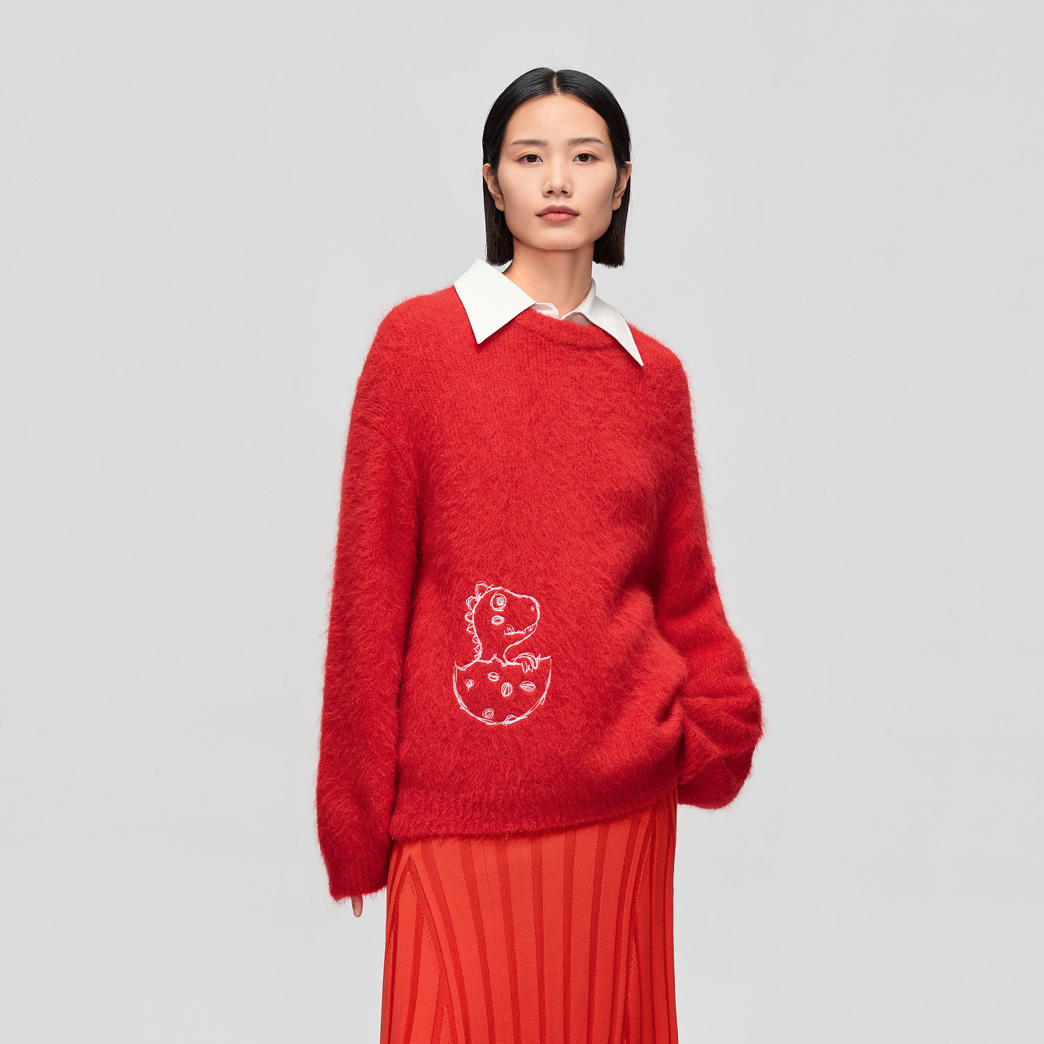 【新年红系列】OVV春夏热卖女装小恐龙造型圆领针织衫毛衣