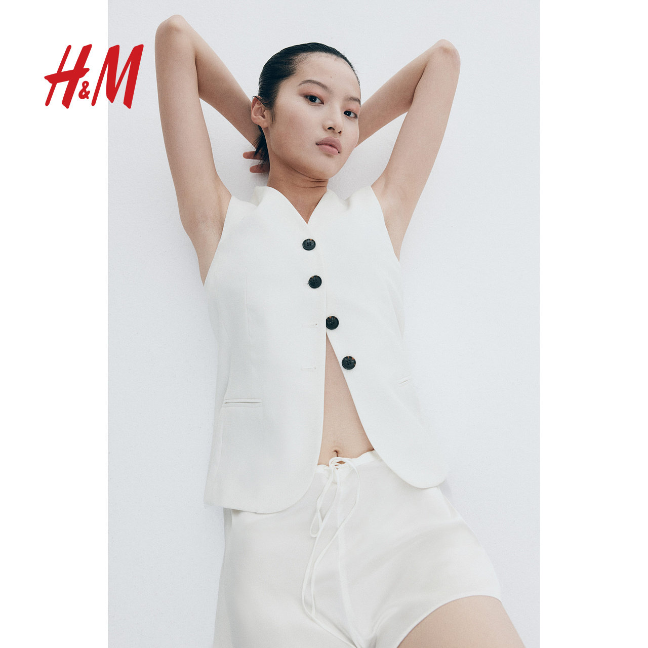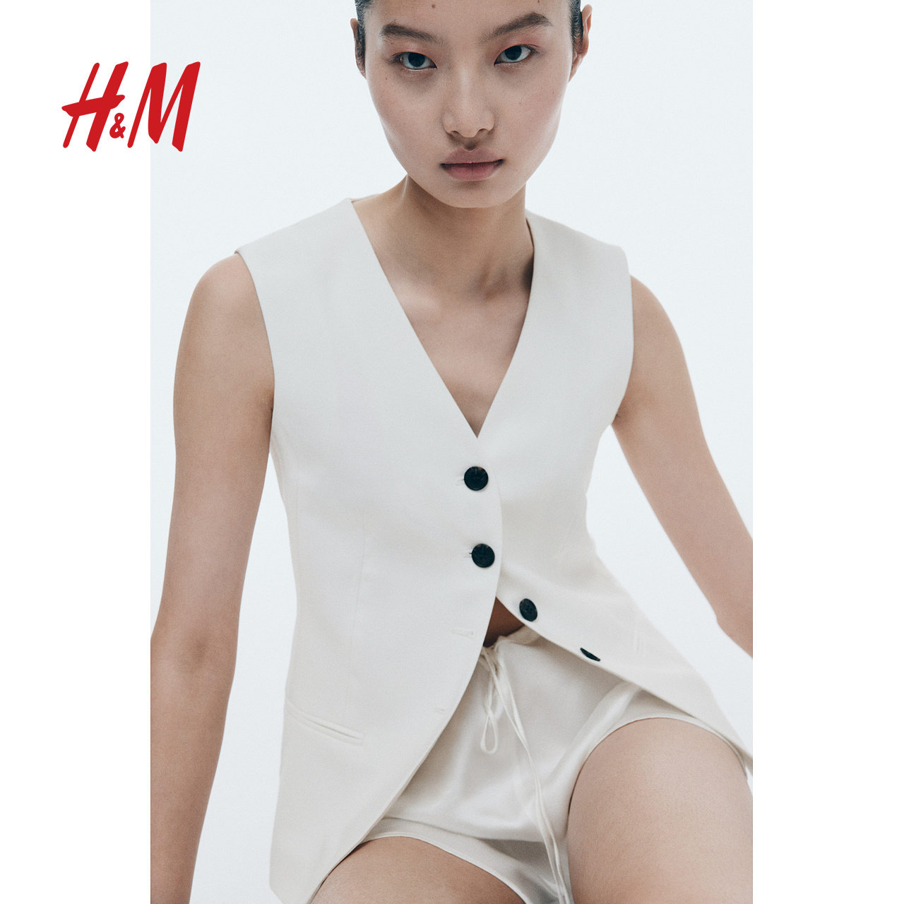 HM春季女装梭织修身V领西装马甲1264528