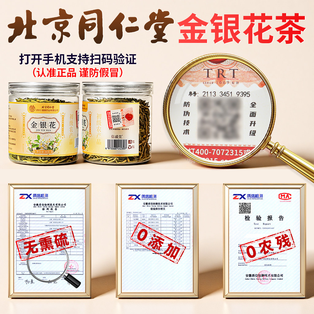 北京同仁堂金银花茶去火清热解毒干花干货中药材正品官方旗舰店