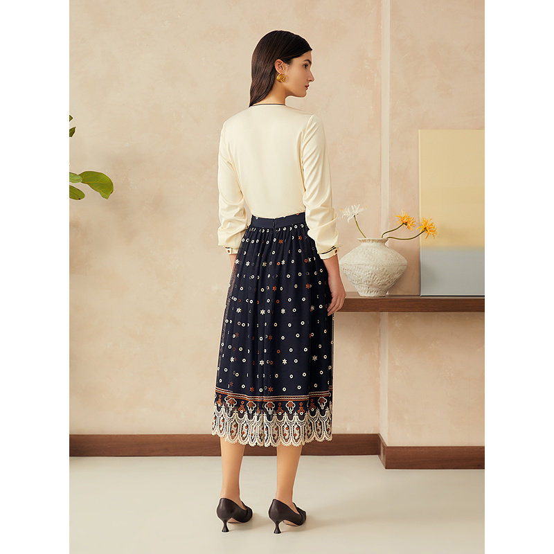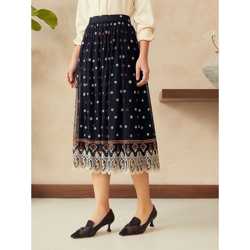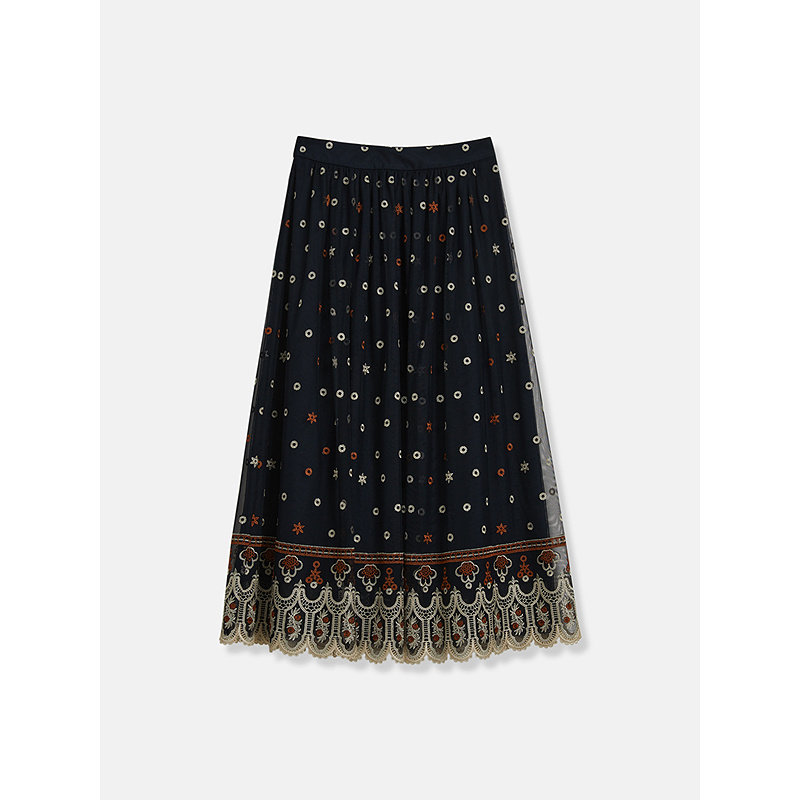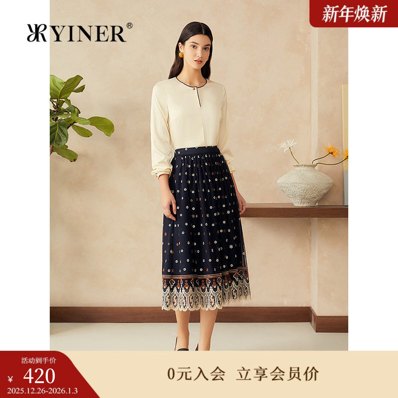 【费尔岛】YINER音儿专选2025春季新款艺术绣花网纱A字半身裙