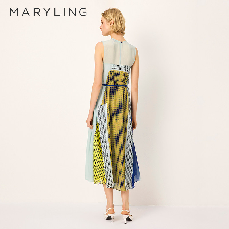 MARYLING玛俪琳2025初夏艺术拼色块印花无袖V领连衣裙A1FCW62860