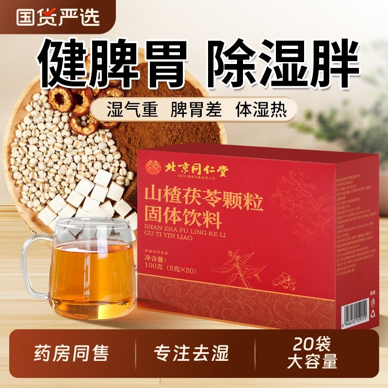 北京同仁堂山楂茯苓颗粒正品祛健脾开胃调理湿气重胃寒气养生茶