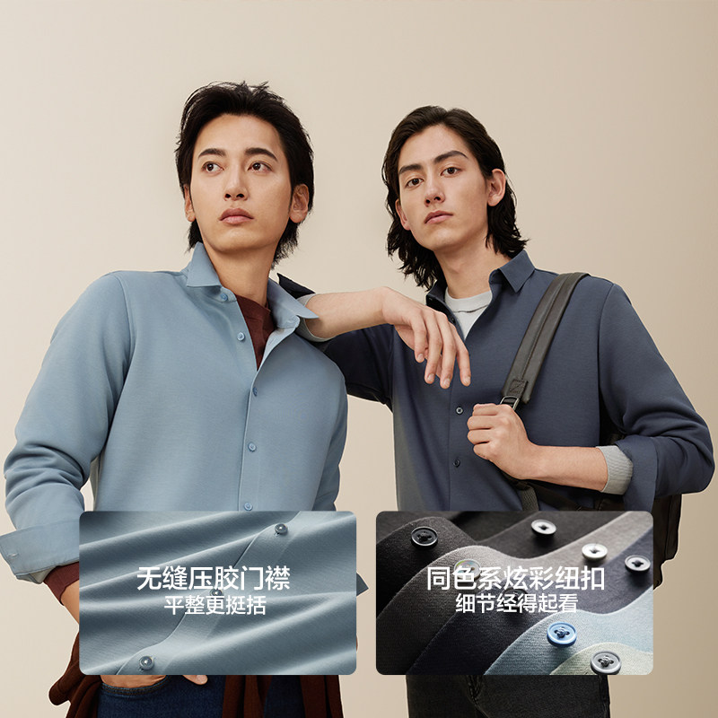 王安宇同款森马长袖衬衫男纯棉2025春秋新款通勤休闲上衣商务衬衣