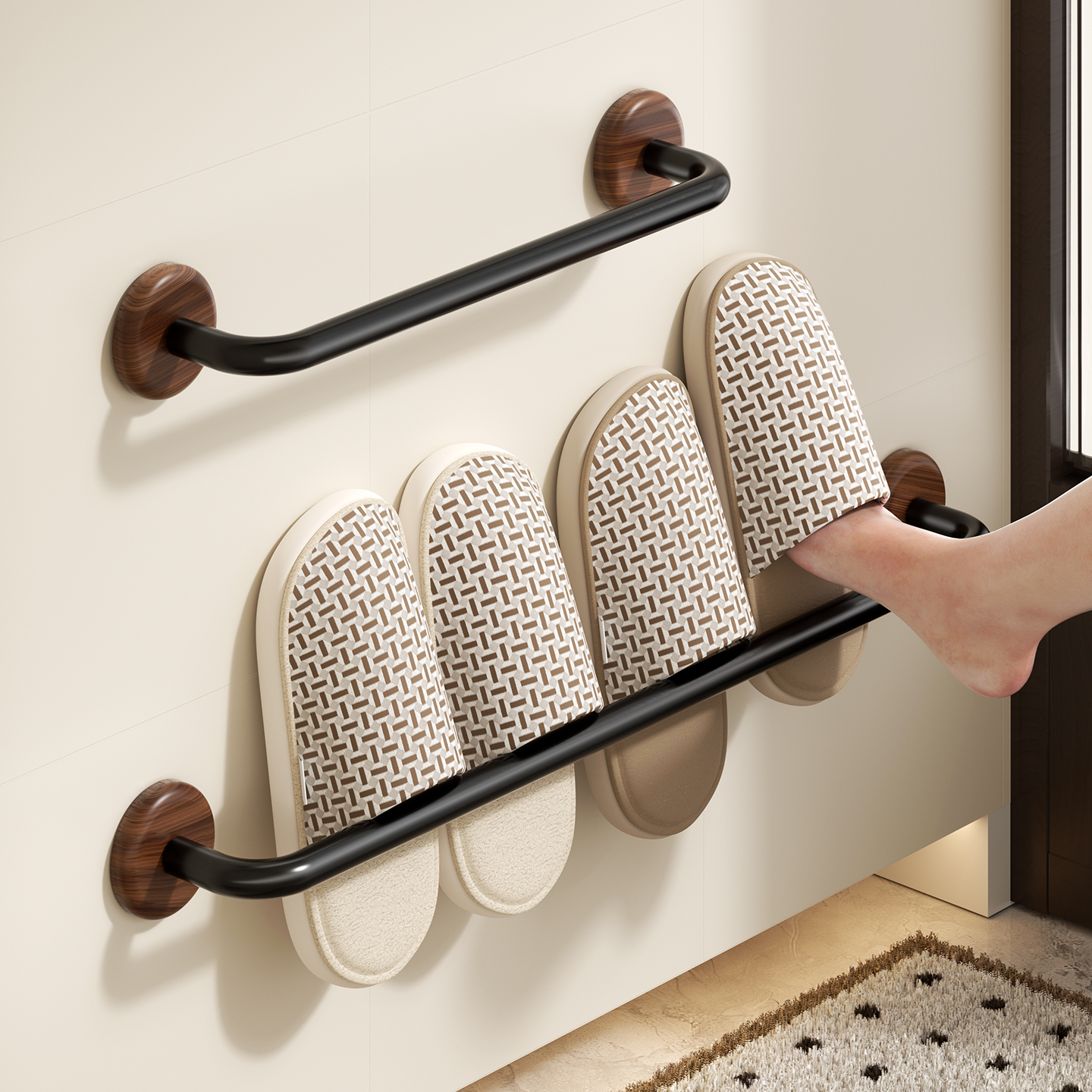 胡桃木中古风浴室拖鞋架壁挂免打孔卫生间厕所专用入户门后收纳架