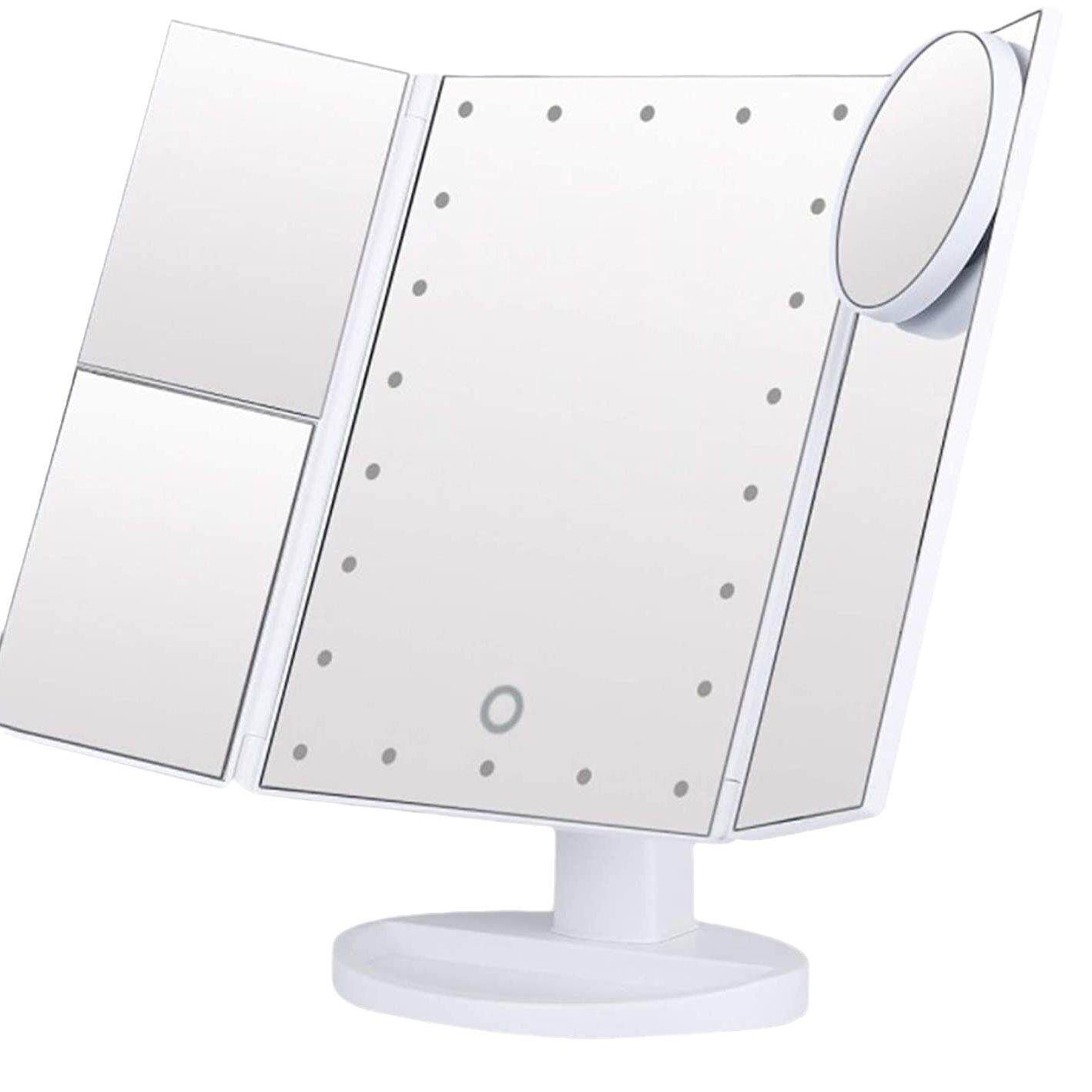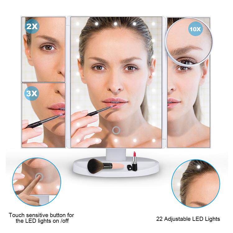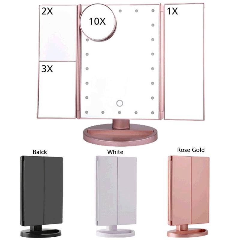 LED三面折叠化妆镜网红梳妆桌面台式镜子带灯led发光三折化妆镜