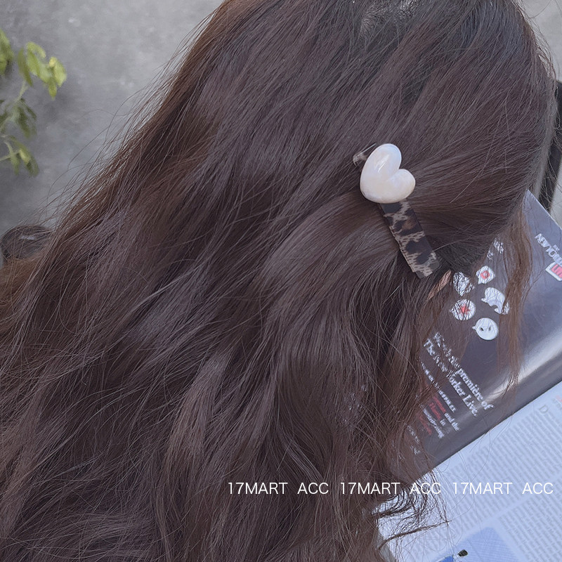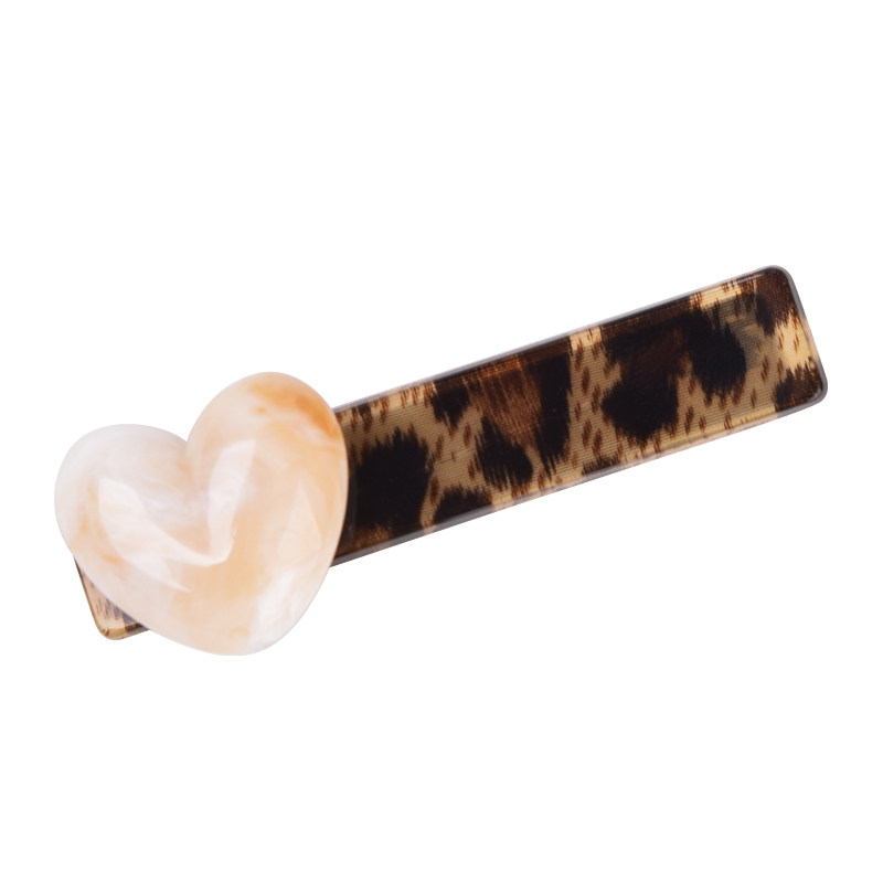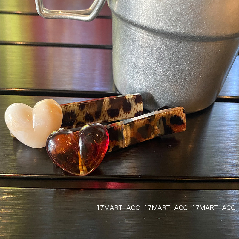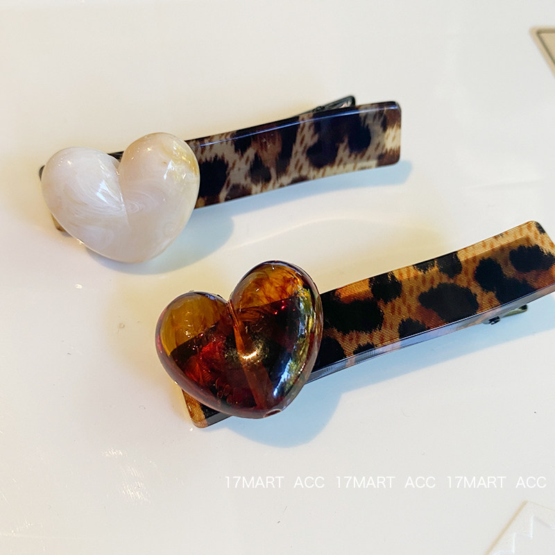 17mart韩国发饰光泽感亚克力豹纹发夹饱满爱心简约鸭嘴夹复古边夹