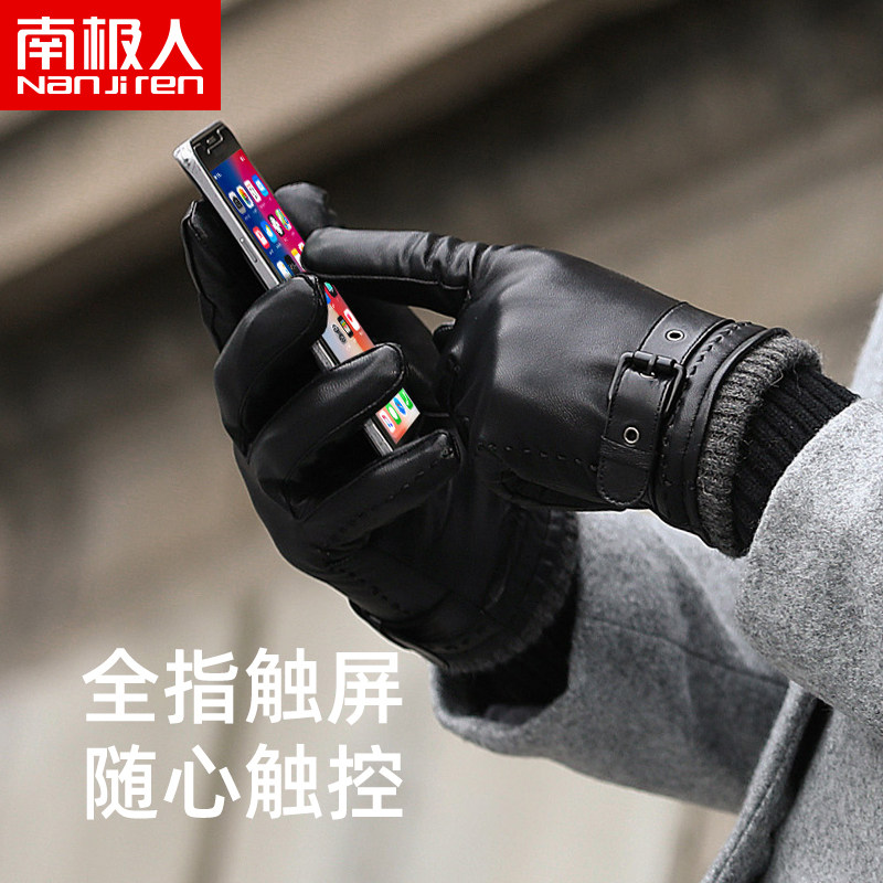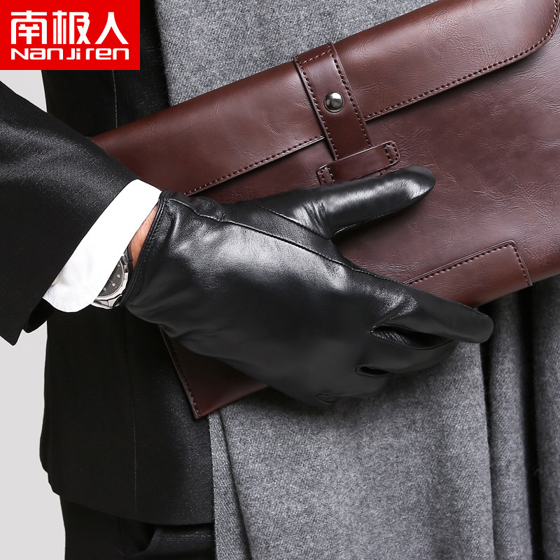 南极人真皮手套男冬天加绒保暖羊皮时尚骑行开车商务送礼礼盒装H