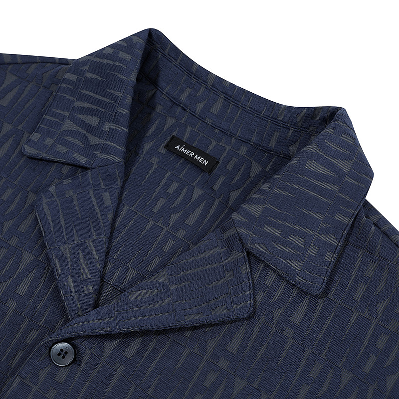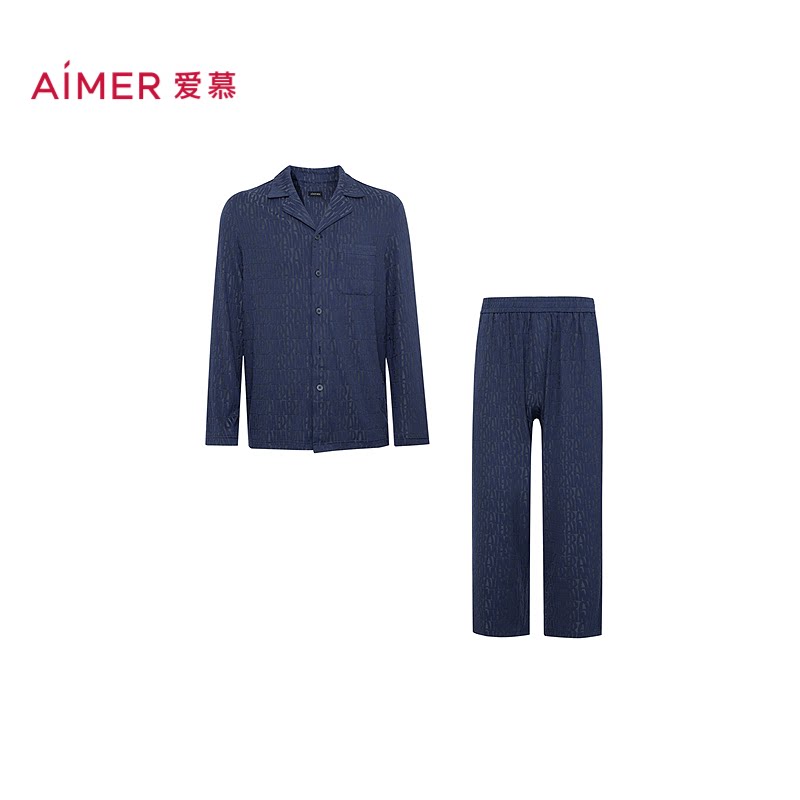 【高莫时尚提花】爱慕先生翻领含莫代尔长袖长裤家居服2026春夏