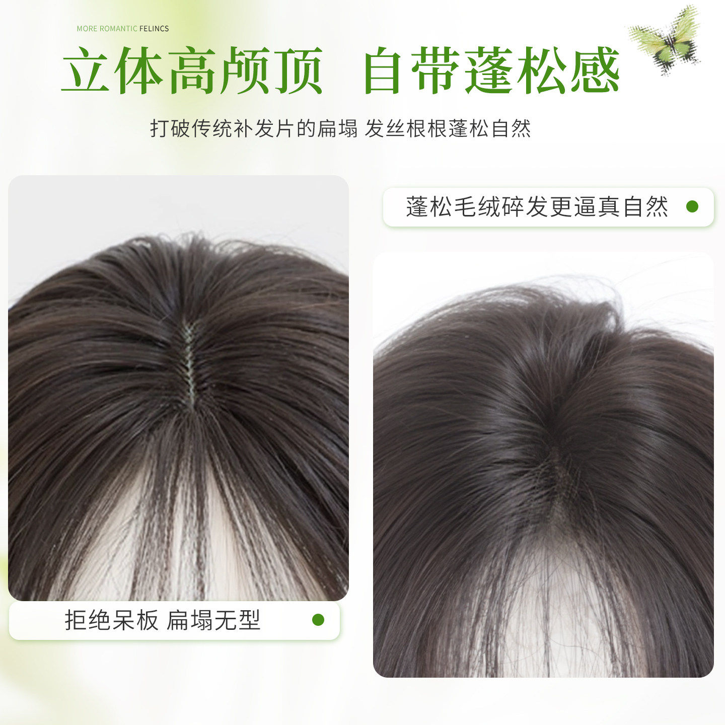 八字刘海假发女片头顶增发量塑颜遮白发神器蓬松高颅顶无痕补发片
