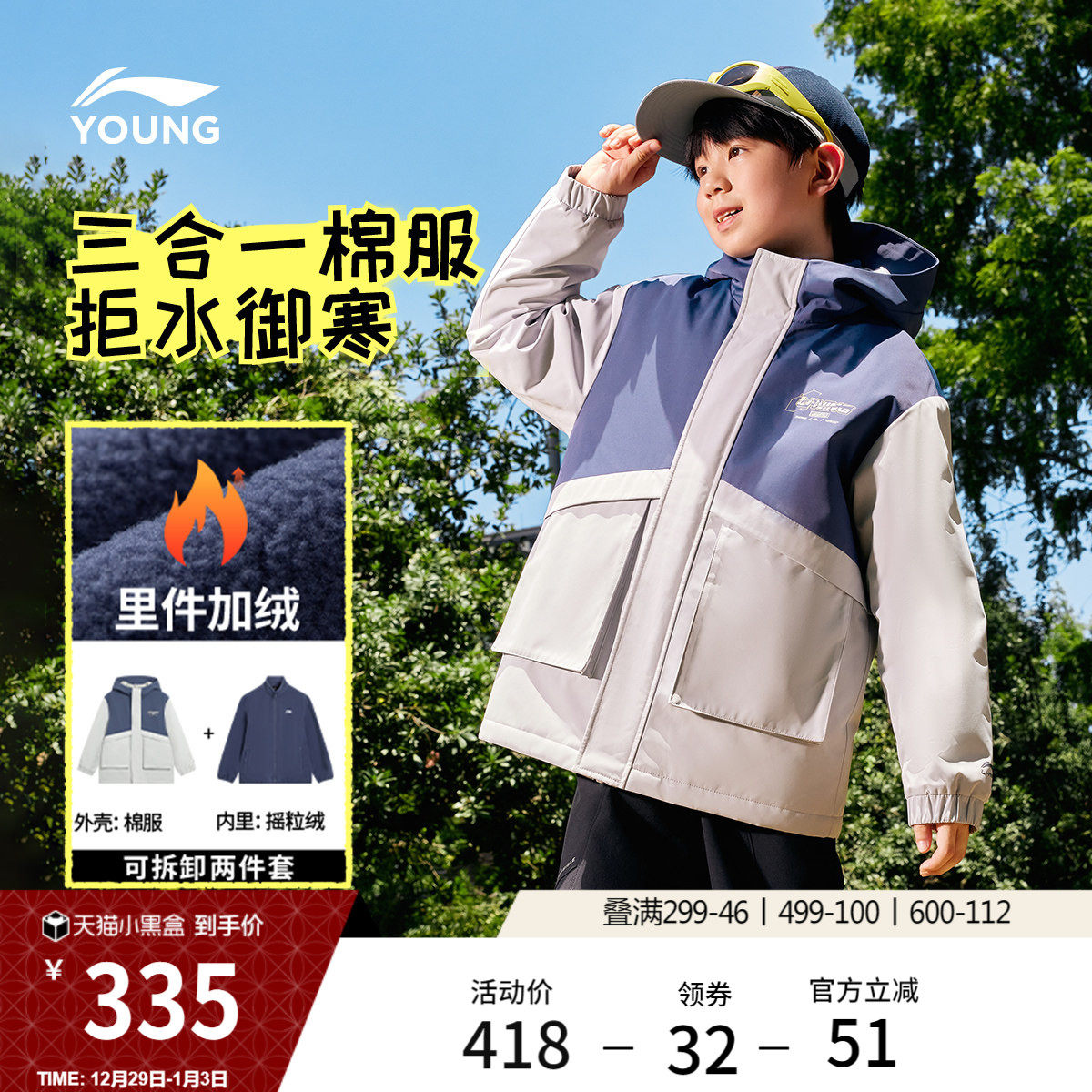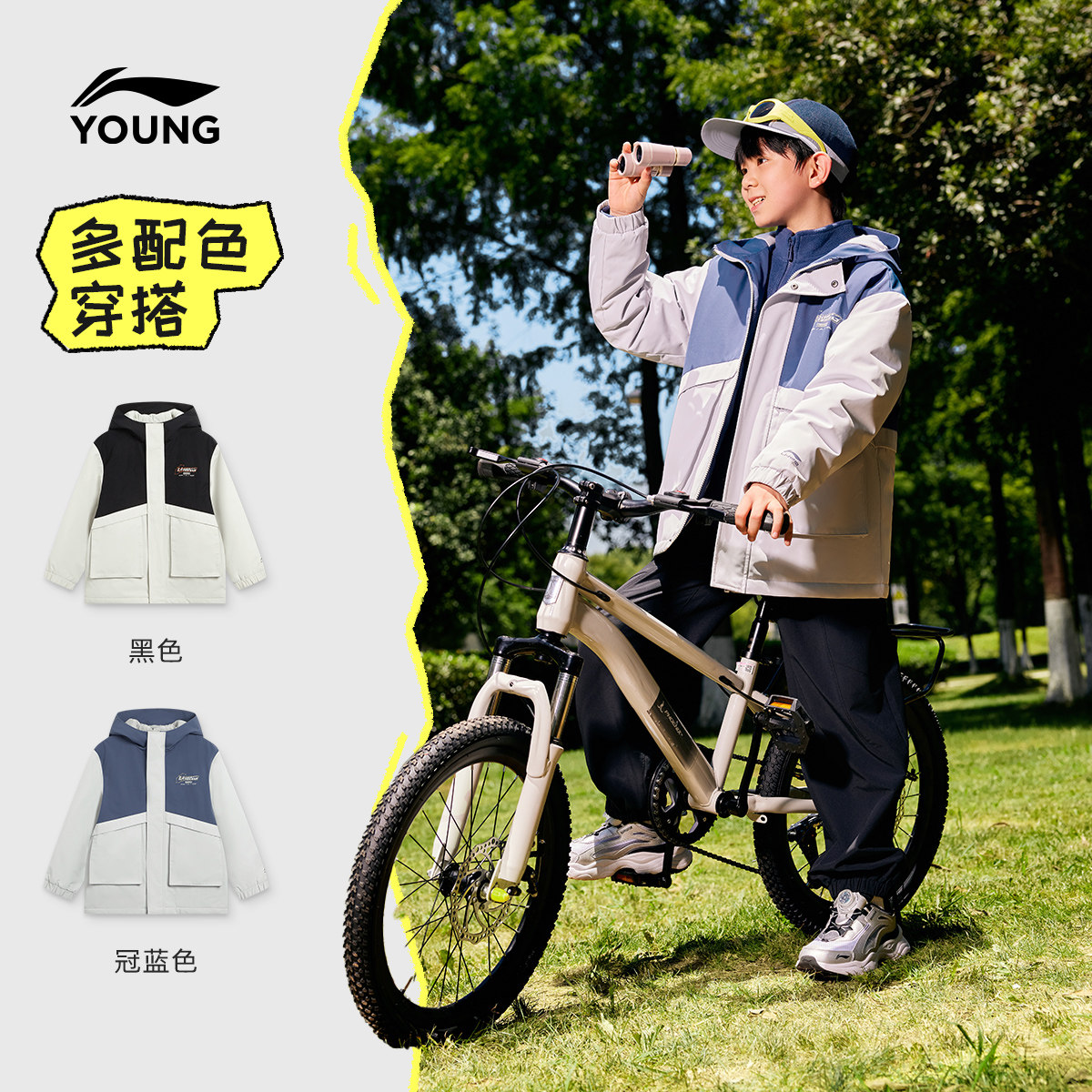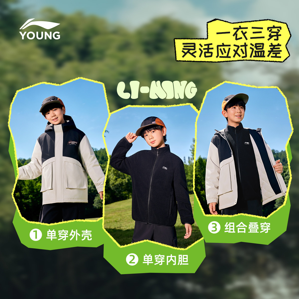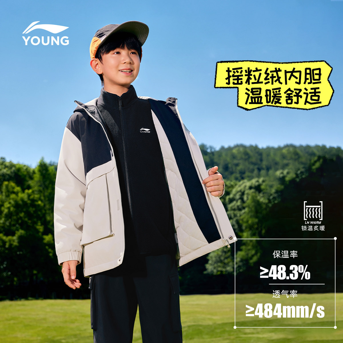 李宁童装棉服男大童新款舒适宽松青少年加绒保暖冬季休闲梭织童装