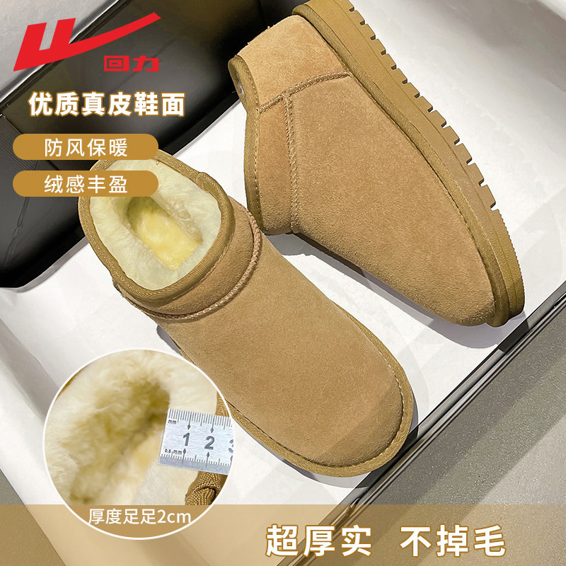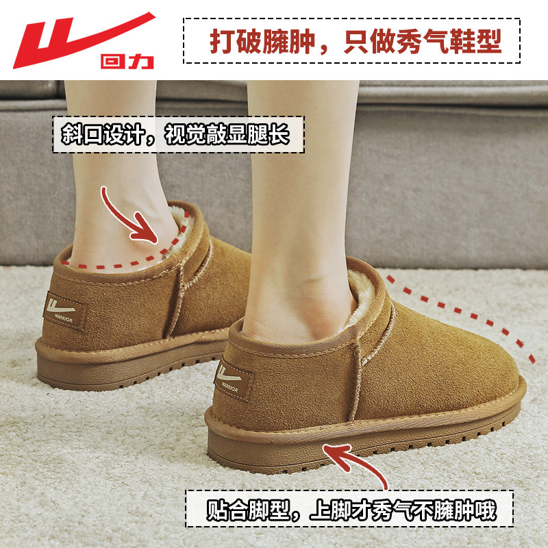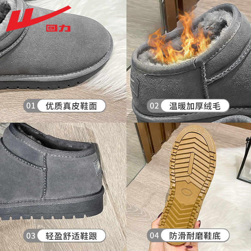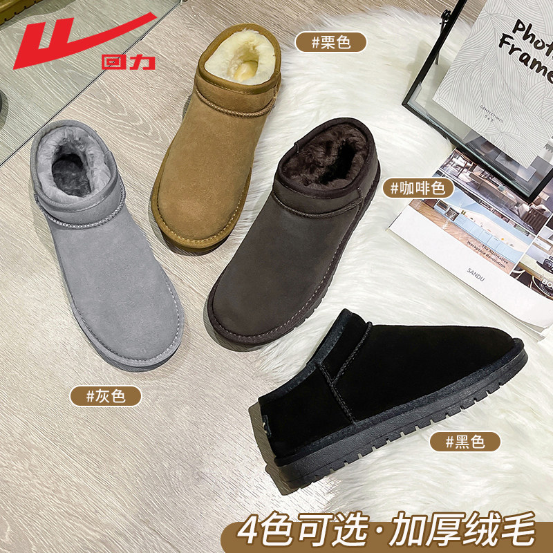 回力雪地靴女皮毛一体2025新款冬季鞋子加绒加厚面包鞋保暖棉鞋男