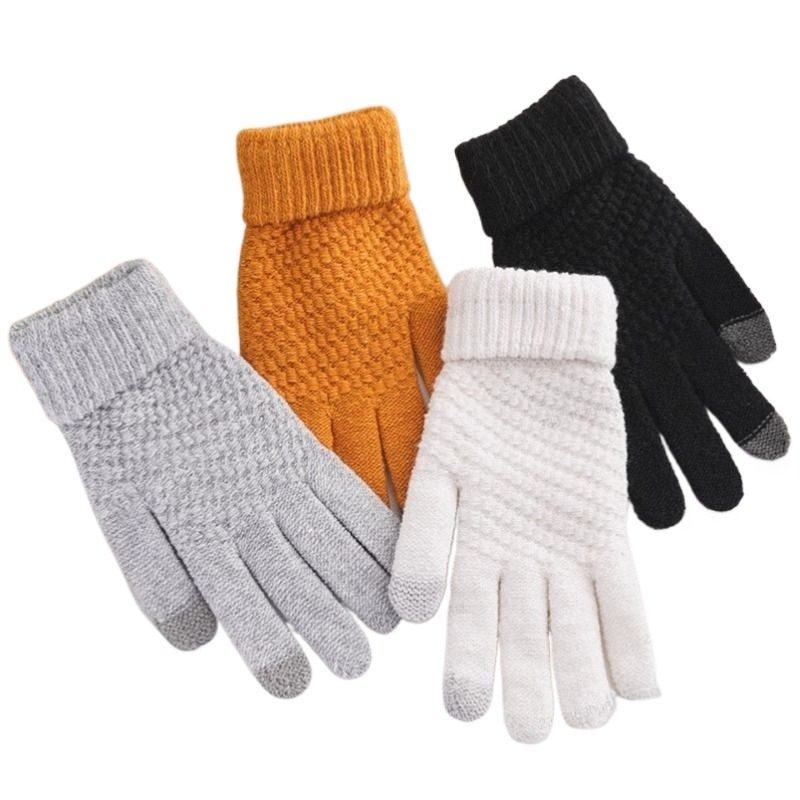 可触屏棉手套男士冬季保暖加绒加厚毛线针织骑行男女同款防寒手套