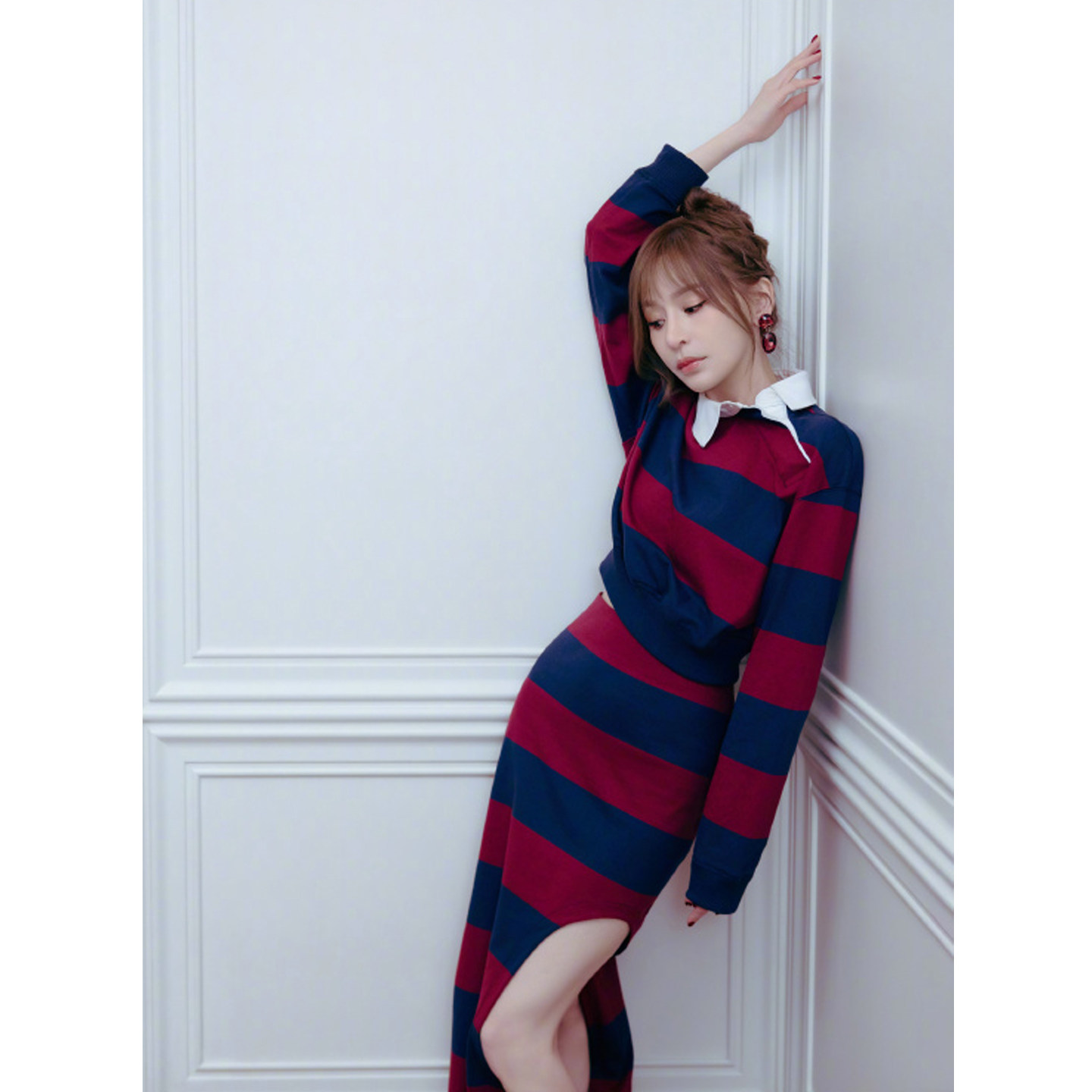 王心凌同款条纹卫衣套装裙减龄2025新超火韩系衬衫半身裙两件套潮