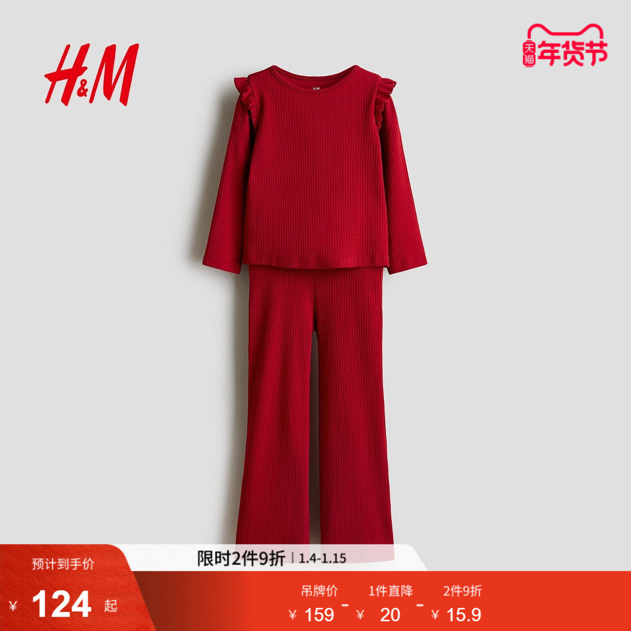 HM童装儿童女童套装2件式冬季红色新年棉质睡衣1295718