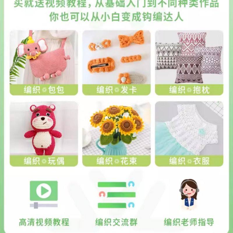 小球球毛线团手工diy编织坐垫地垫空调盖毯柔软豆豆线钩针材料包