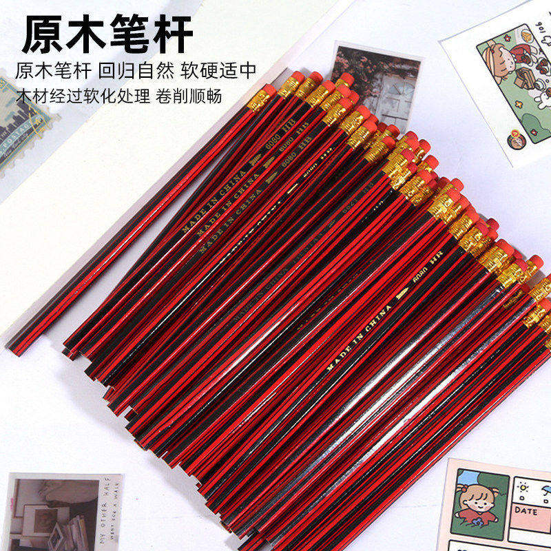 新款红黑抽条红杆铅笔经典套膜红色绘画素描木质铅笔学生办公通用