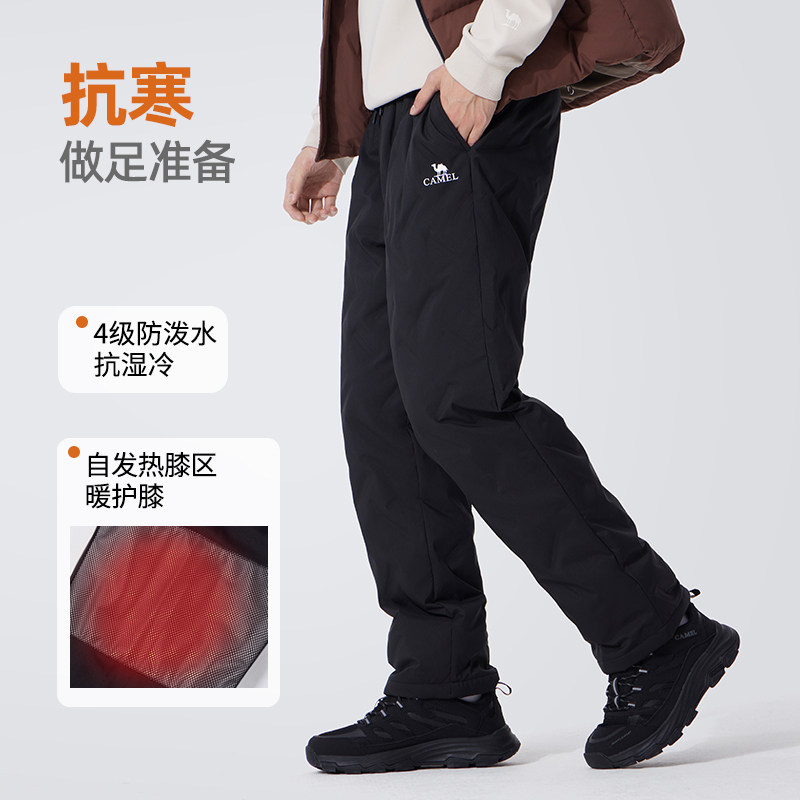 骆驼男装休闲裤男防水冬季加厚保暖拒水白鸭绒羽绒裤直筒运动长裤
