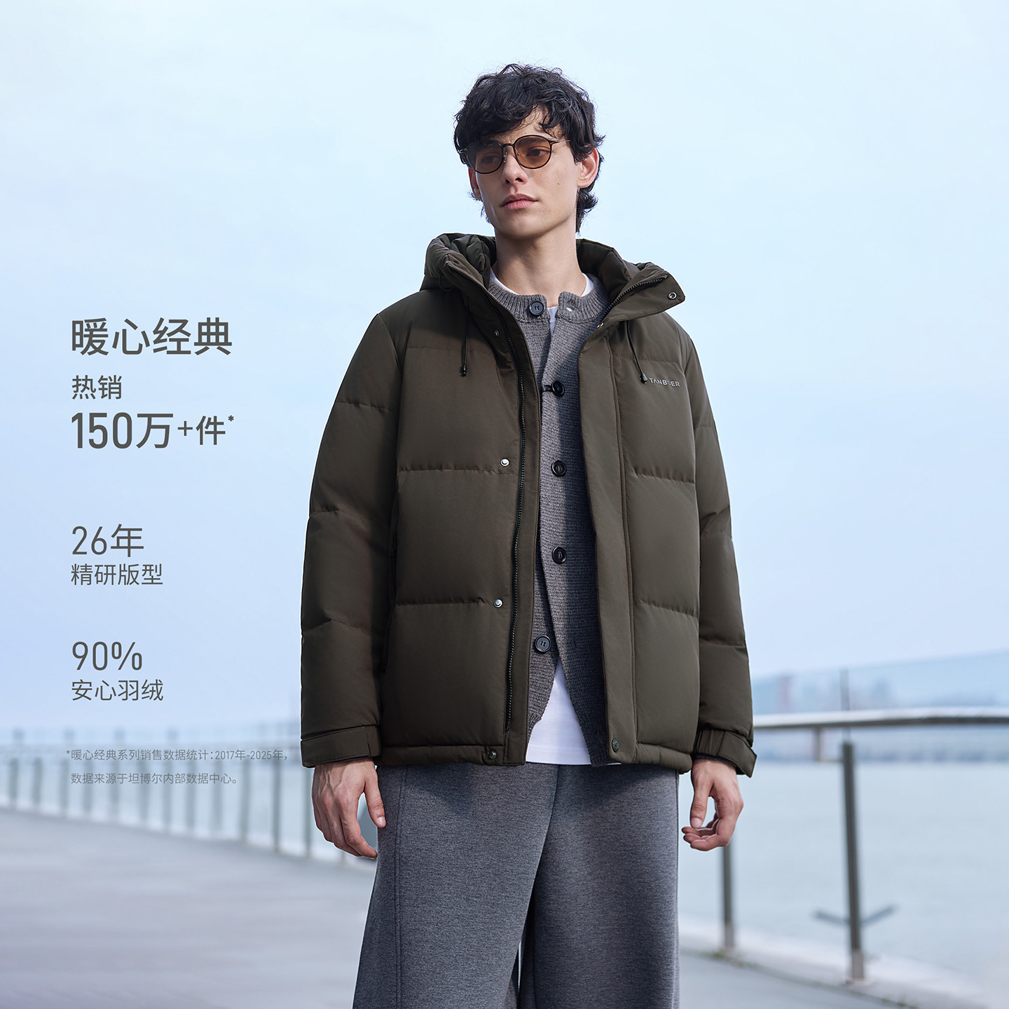 坦博尔羽绒服男冬季短款连帽休闲宽松2025新款潮流加厚面包服外套