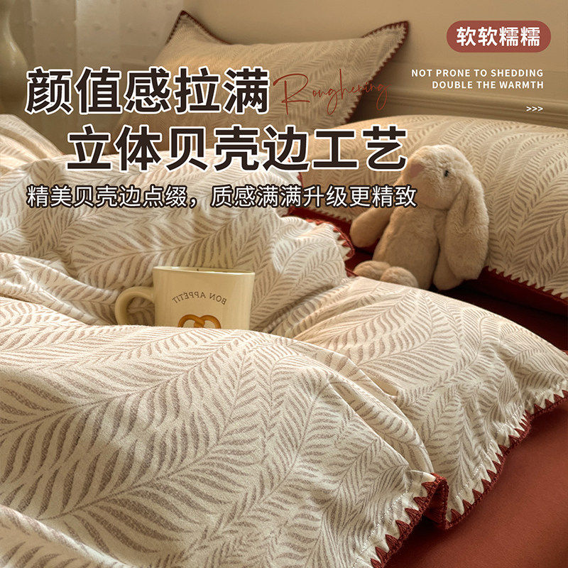 皇冠暖绒床上四件套超保暖牛奶绒床笠三件套冬季A类保暖双面加绒