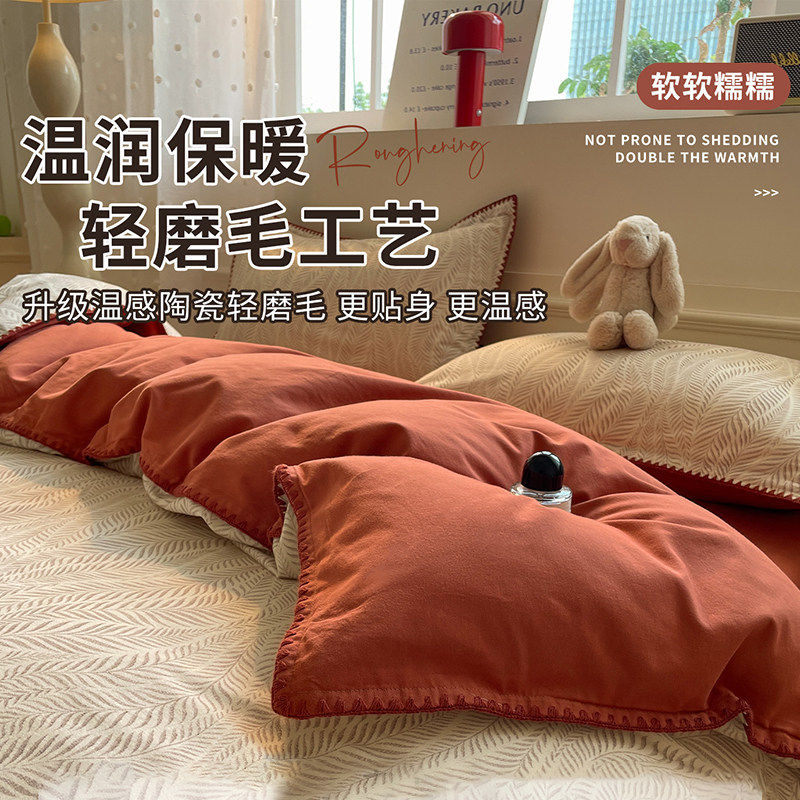 无印良品纯色秋冬牛奶绒四件套珊瑚绒床上绒三件套冬季加绒法兰绒