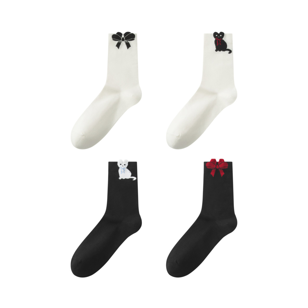 森马袜子女抑菌中筒袜时尚提花ins学生袜柔软弹力棉袜小众4双装潮