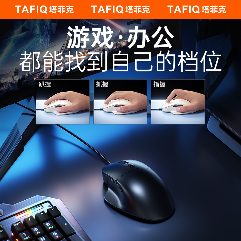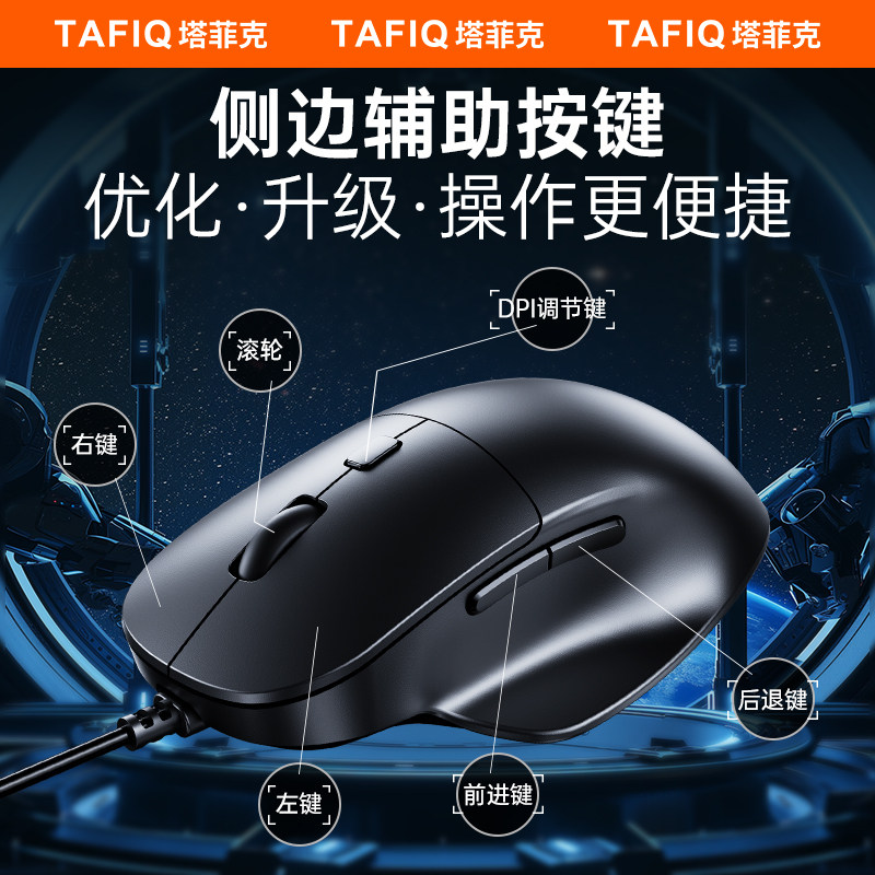 塔菲克usb有线鼠标静音游戏电竞专用6键宏编程办公台式笔记本电脑
