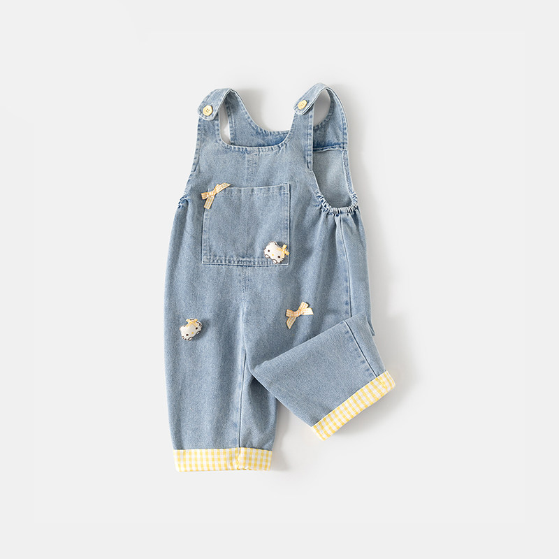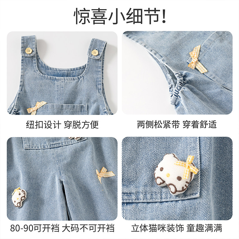 班喜迪女童背带裤春装2026新款女宝宝休闲裤弯刀裤儿童牛仔裤裤子