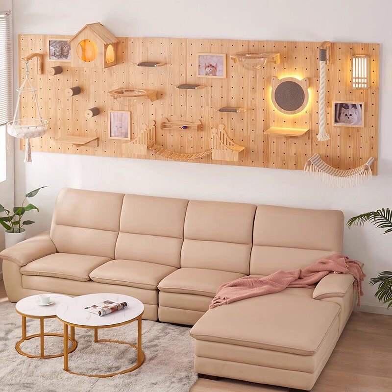 水木生实木猫爬架猫窝一体免打孔家用占地小洞洞板猫墙猫抓板吊床