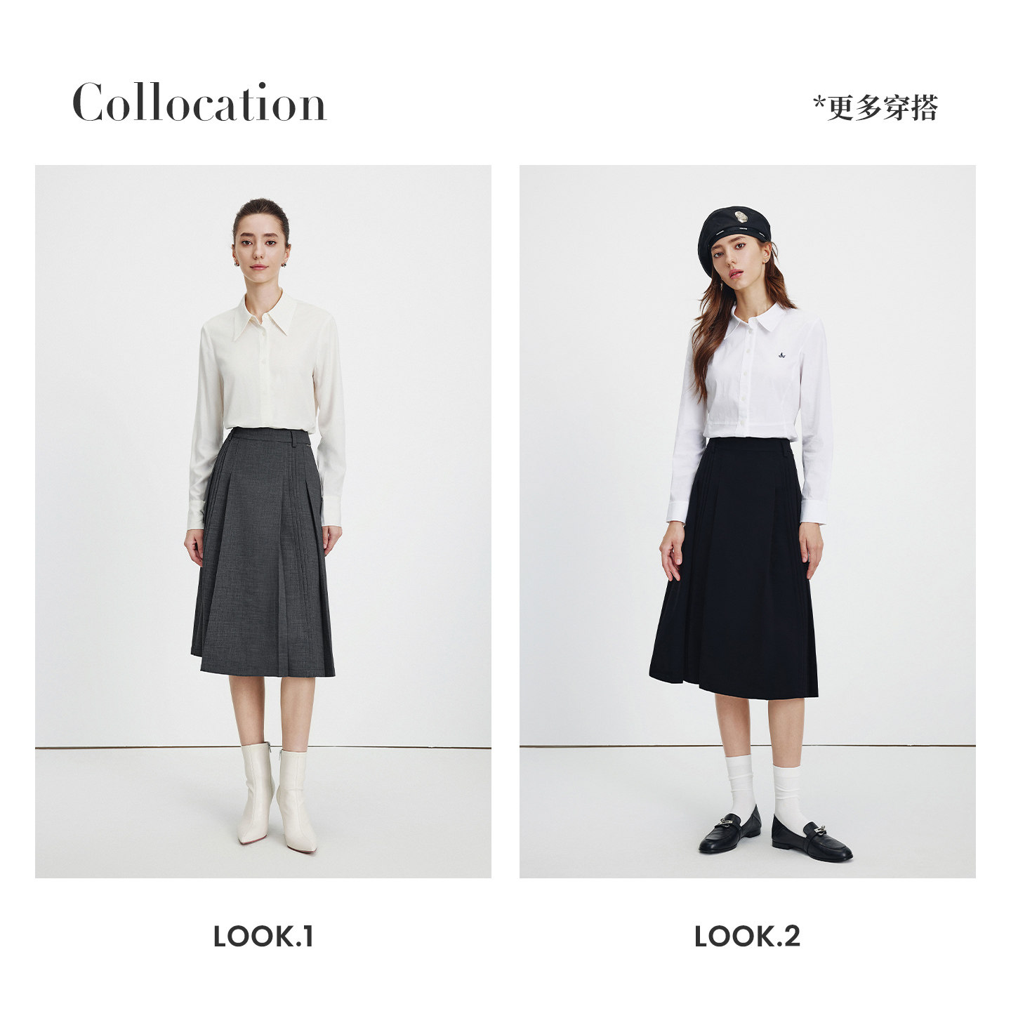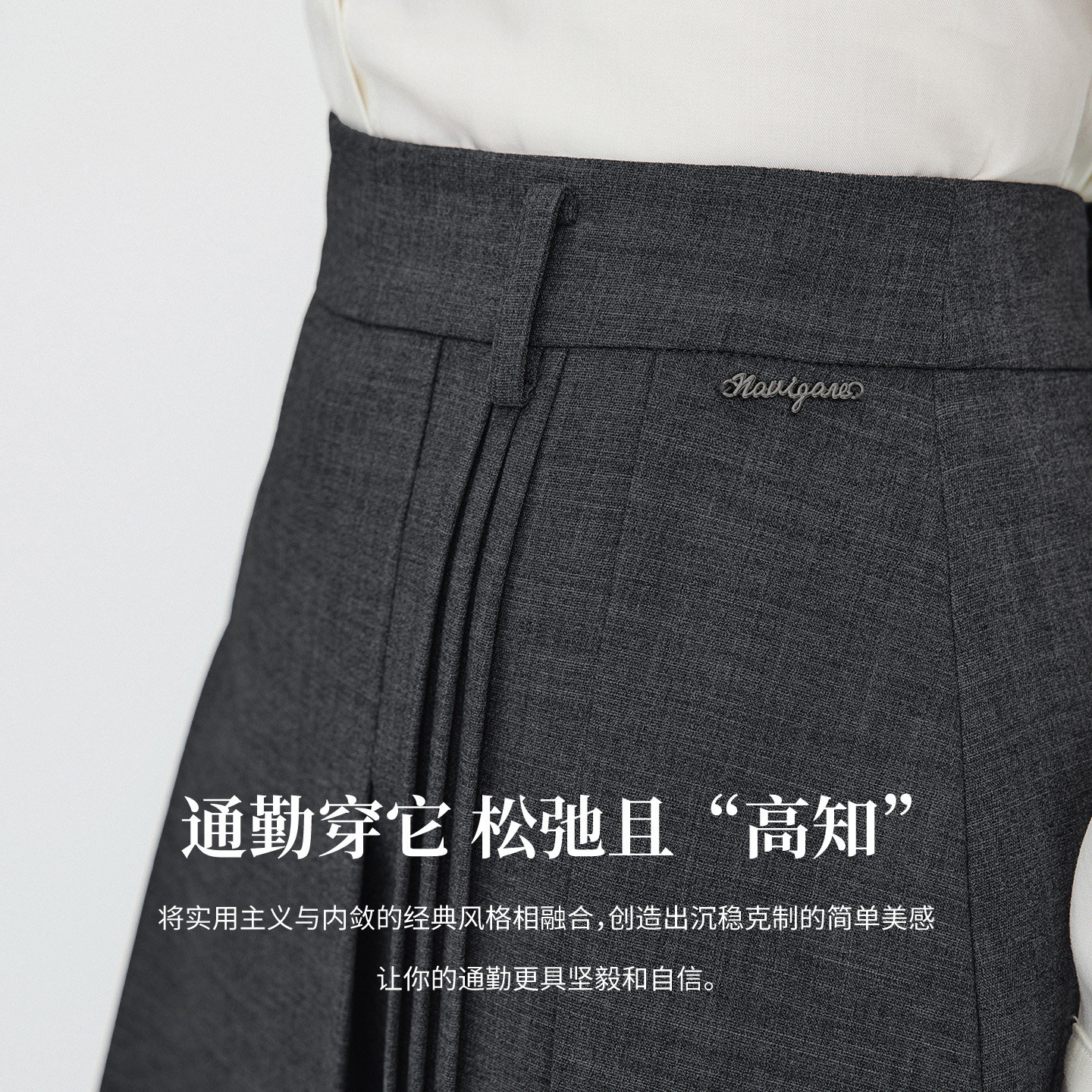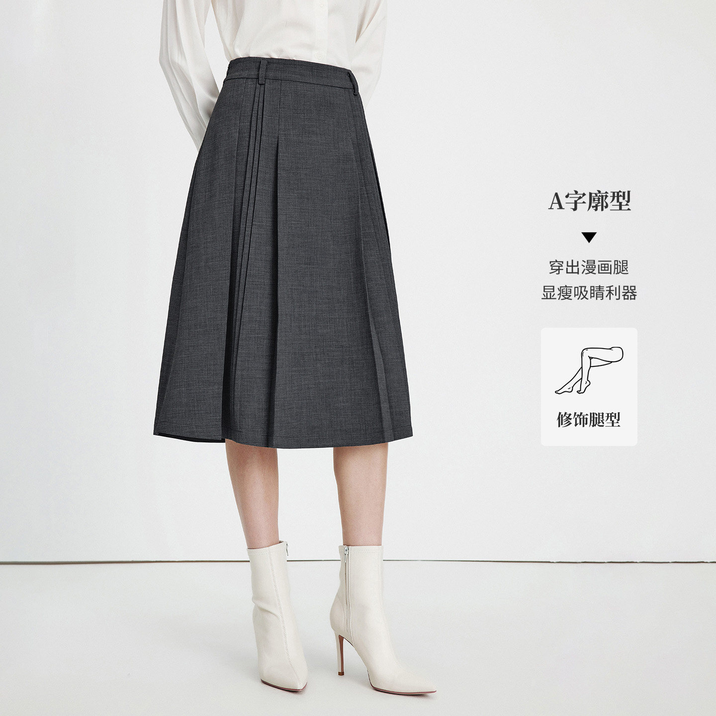 MJ STYLE灰色百褶西装裙女秋冬半身裙高腰休闲大摆a字过膝中长裙