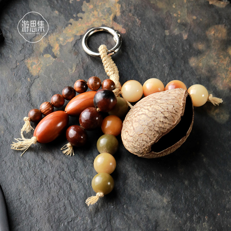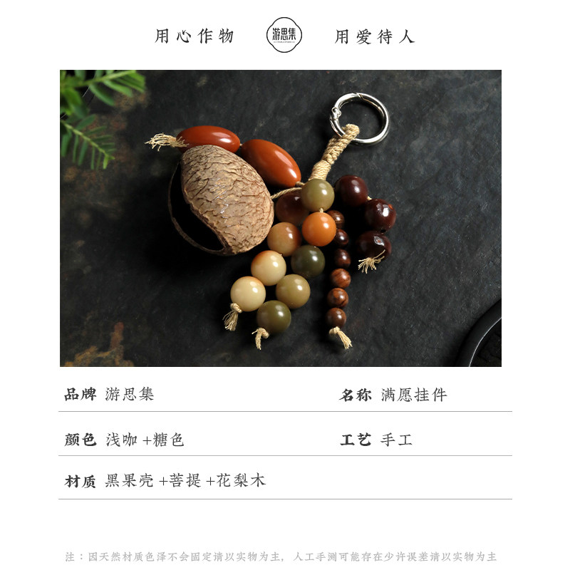 【满愿挂件】天然菩提带子款手工复古风包挂挂件车挂钥匙扣新中式